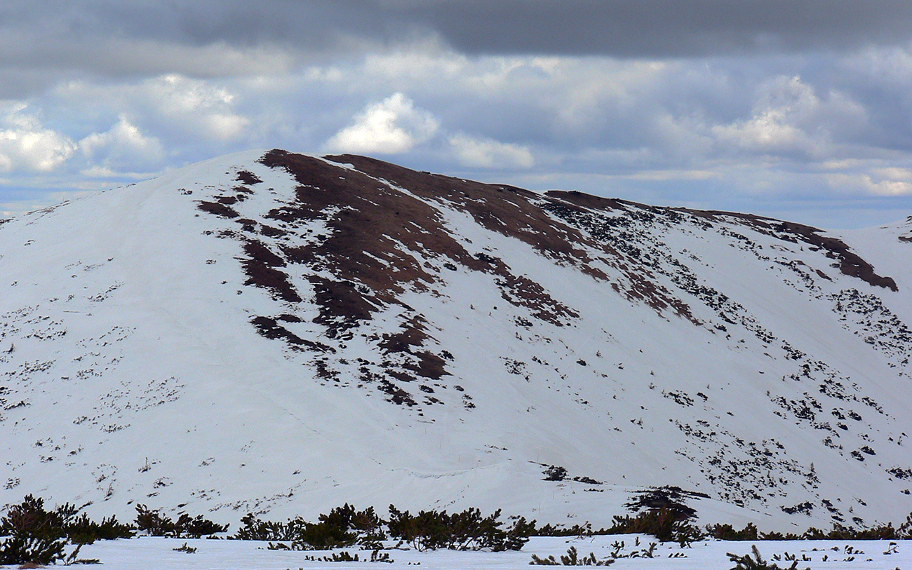Kolo obeda sme sa potom kadejako stuhnutí vyhrabali cez Králičku pod Besnú, pekne po hrebeni, aj nejaké fľaky bez snehu sme poobchádzali, aj do južných zjazdoviek zhora nahliadli (keď slnko vyšlo na chvíľu spoza mraku, aj sa zdali byť prívetivo natopené), aj sme odtrh až na základ pod Štiavnicou obzreli, cestou nazad.