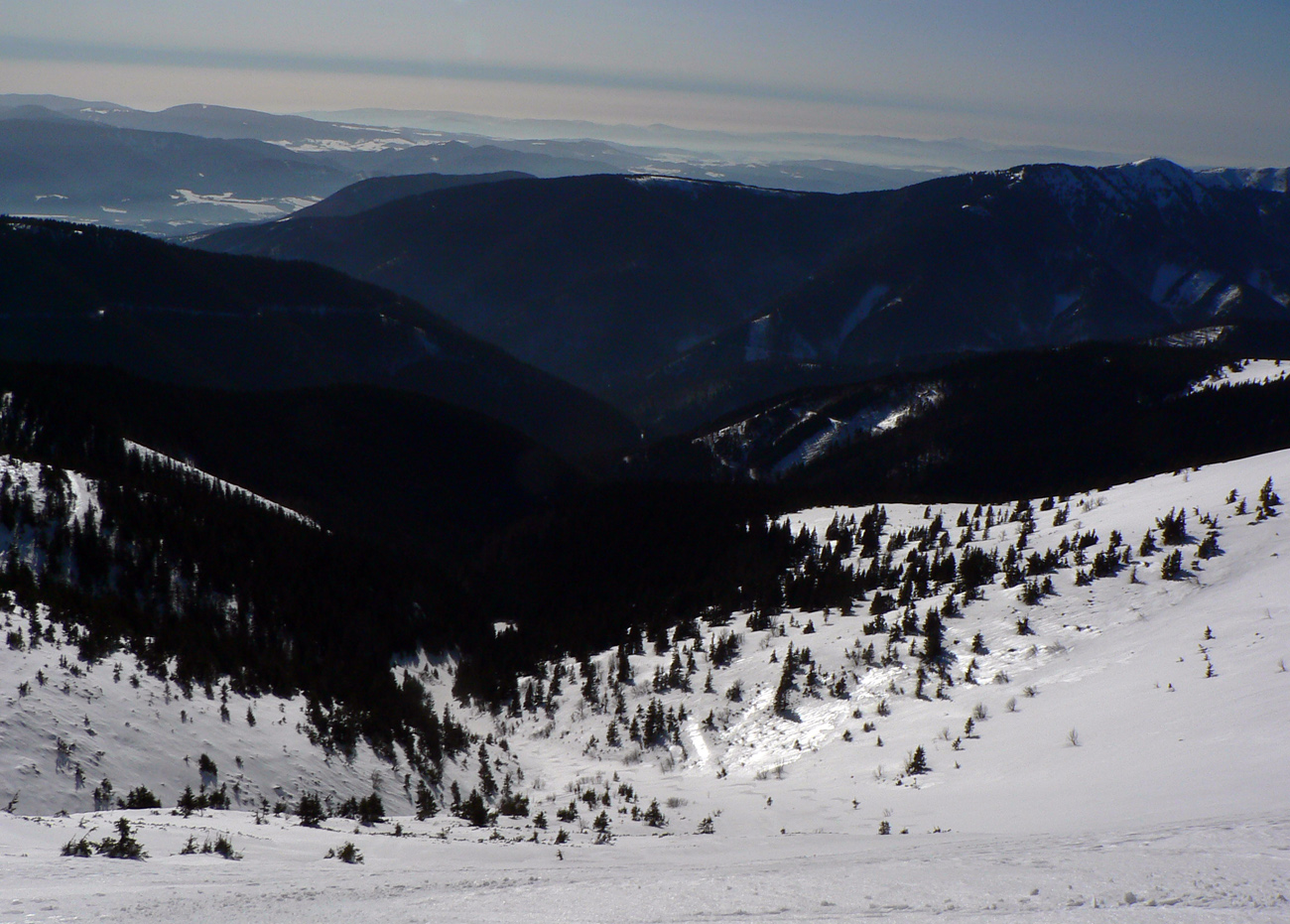 Celý masív až pod Košarisko bol síce ešte ľadový a poriadne hrkotavý, ale od Sedla pod Skalkou až na Chopok už také jarné optimum – niečo málo čerstvého, vlhkého snehu na starom, ľadovom základe. Rýchla stopa, len v prudších traverzoch sem - tam spodná lyža ustrelila smerom dole, do doliny.