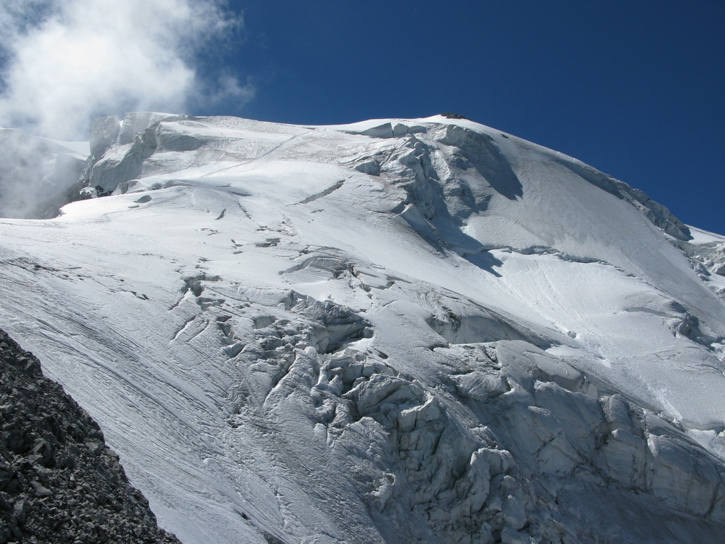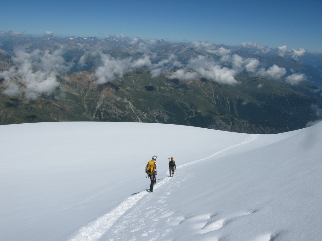 Z chaty sa zvykne vyrážať skoro ráno. Budíček, pri ktorom zobudia všetkých nocľažníkov, býva o štvrtej ráno :) Vzhľadom na zostup po ľadovci a trhliny sa neodporúča pohybovať sa po ľadovci po obede, keď naň svieti už dlhšie slnko a je teplo. Rovnako sa neodporúča zostupovať po ľadovci v hmle alebo v tme. Úplne najhoršie je určite, keď pri zostupe nemáte prešliapanú stopu a ste tam prvý raz.... Také niečo by sa však v lete stať nemalo. Je to predsa len hojne navštevovaný kopec.