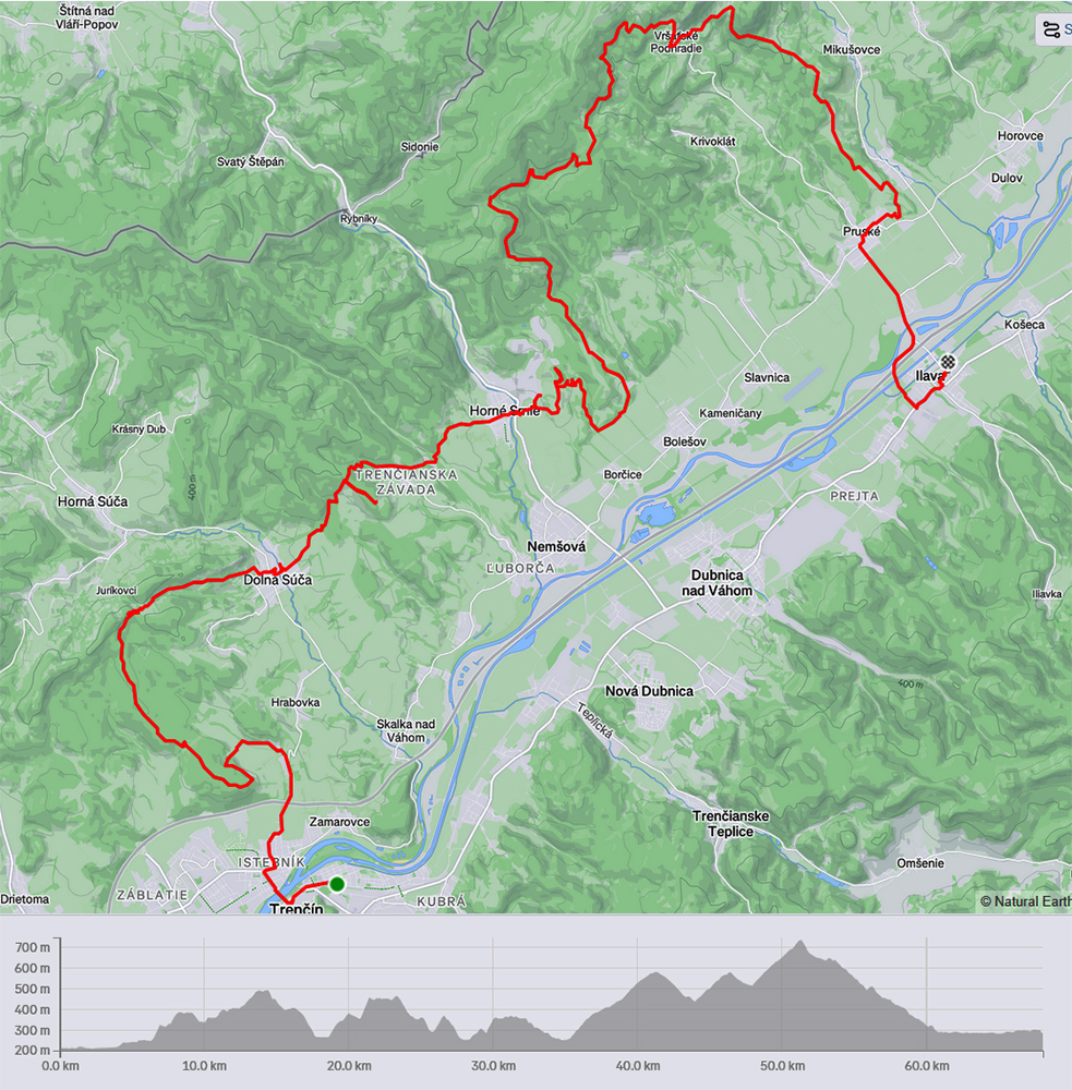 Z Trenčína do Ilavy, ale pretože na mtb, tak pekne podhorím Bielych Karpát, a pretože výlet, tak nie aby to bolo len hluché drtenie kilometrov, snažil som sa po trase „vyzobať“ nejaké miestne zaujímavosti. Slnečná, ale v porovnaní s predošlými dňami poriadne studená sobota sa vyskytla začiatkom októbra, tak FIANDRE CABRIO poslúžilo verne a dokonalo. Na to, ako len pár dní predtým pršalo, som sa divil, ako bolo na lesných cestách sucho. Pretože tu v lesoch prevládajú hlinačky, bol som aj rád. Len občas mláky boli - pohodlne obíditeľné. A vzduch ostrý, jesenno priezračný, len farby ešte nesvietili naplno, čakali na prvé mrazíky. Jeden z nich akurát utekal pred slnkom, keď som znášal bajk z vlaku a vynáral sa zo staničného podchodu. Potom až po cieľovú pohodu na ilavskej stanici to vydalo asi na 68 km a 1900 výškových, COROSy to namerali takto: