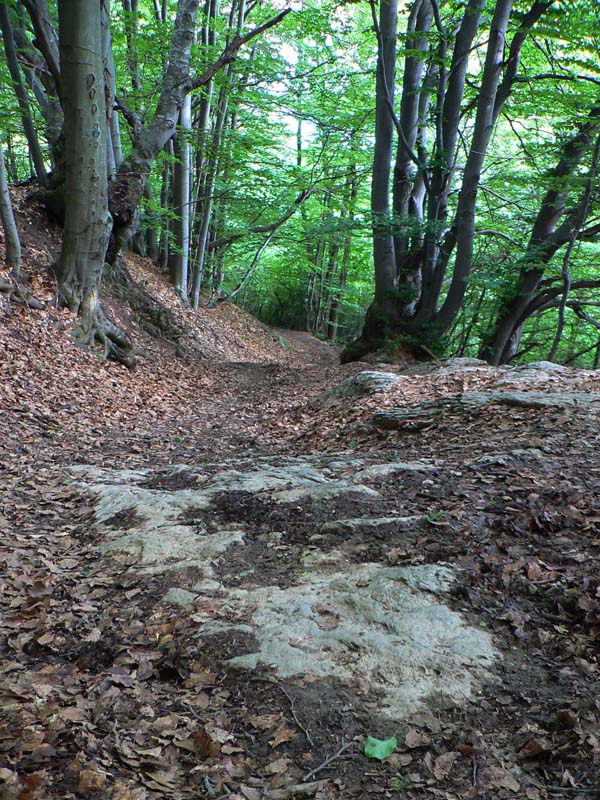 Rútim sa dolu kopcom z Panského Dielu, hlboko podo mnou sídlisko Sásová - Rudlová. Míňam strojovňu vleku a o chvíľu sa chodník ponorí do lesa. Najprv vedie po východnom svahu zalesneného Hrádku. Keď sa prehupne na západný svah a vyjde na malú, zarastajúcu lúku, treba si po pár metroch dobre všimnúť nenápadnú, ale od roku 2012 už oficiálne označenú odbočku prudko doprava, po vrstevnici. Tá po pár sto metroch prichádza nad zráz nad dvojicou jaskýň. Kaplnka je vyššia, Netopieria hlbšia (44m) a krajšie vyzdobená (aj visiacimi netopiermi). Pred tou druhou je aj tabuľka s nákresom jej pôdorysu: z hlavnej chodby, zakončenej Galériou a Kancľom, sa odpája kratšia Partizánska sieň. Bralo s jaskyňami je prírodnou pamiatkou, ale od roku 2008 s povoleným vstupom. Jaskyne majú bohatú a archeológmi doloženú minulosť, už v praveku sa tu žúrovalo. Našli sa tu pozostatky keramiky zo 4. storočia, bronzové nástroje lužickej kultúry spred 3000 rokov aj zvyšky ľudských obetí. Nálezy z mladšej a neskorej doby bronzovej súvisia s hradiskom, ktoré stálo na Hrádku. Podľa bordelu naokolo sú jaskyne aj dnes miestom opiášov a zvyšky jedla samozrejme lákajú všelijakú „dzivú zver“, takže pozor! V zime je na dne oboch jaskýň bohatá ľadovo-stalagmitová výzdoba. Po prieskume sa odtiaľto netreba vracať nazad na značku, ale neodporúčam. Nenápadný chodník vedie síce od jaskýň aj smerom dolu - do Sásovskej doliny, ale cez zaváľané rúbane, žihľavu a lopúchy. Napája sa na traverz, ktorý z horného konca doliny (z asfaltky) vedie lesom popod jaskyne na lúky nad Sásovou a tam sa napája na modrú turistickú značku. Presne na tú, ktorú som pri zostupe z Panského Dielu opustil smerom k jaskyniam.