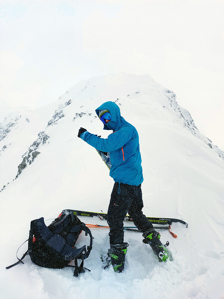 V prechode do strmého záveru výstupu pod Vyšným Kôprovským sedlom lyže na batoh. Stopy už boli, pohodlne to išlo aj bez mačiek, tuhá a pevne prilepená čerstvá nádielka poskytla takú akurát oporu. Len to už prihučali mraky, zachytávali sa stále nižšie na vrcholkoch a začínala difúzka. V sedle už poriadne fučalo, na Kôprovský už sme ani nešli, nebolo tam vraj vidieť ani na krok – hovorili tí, ktorí už sa vracali.