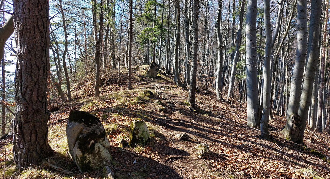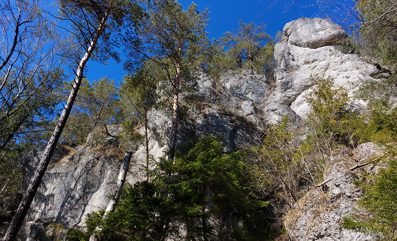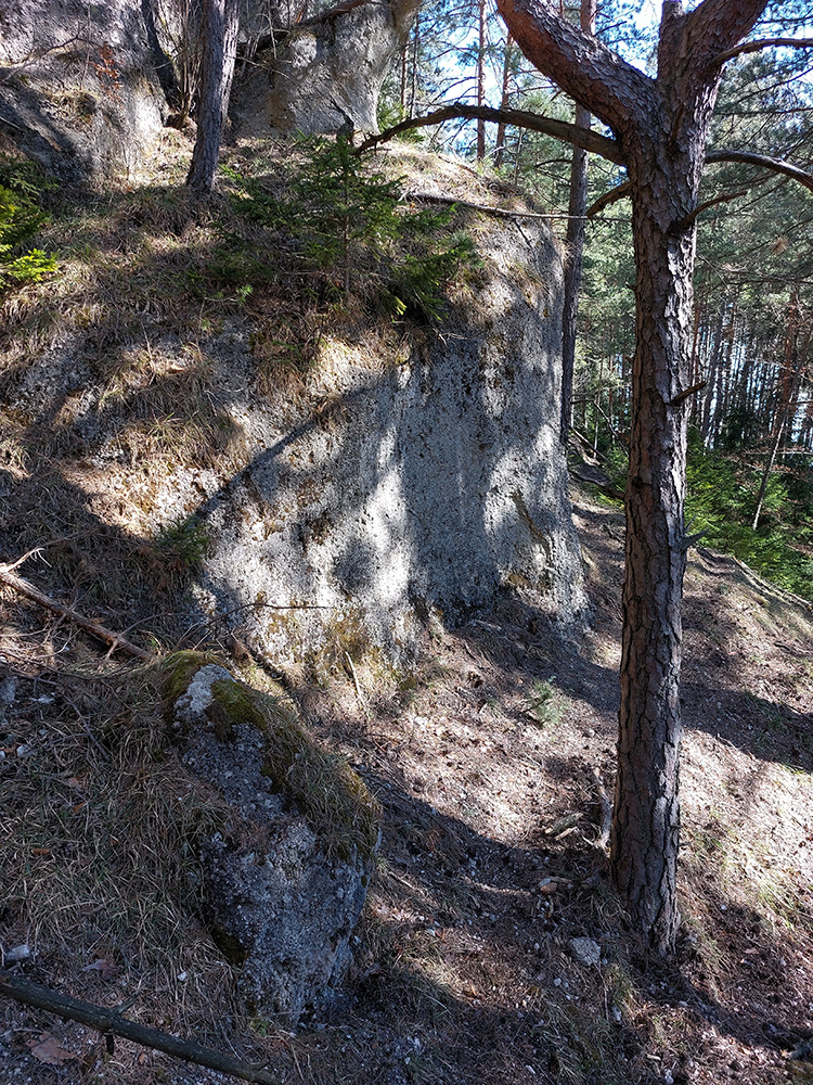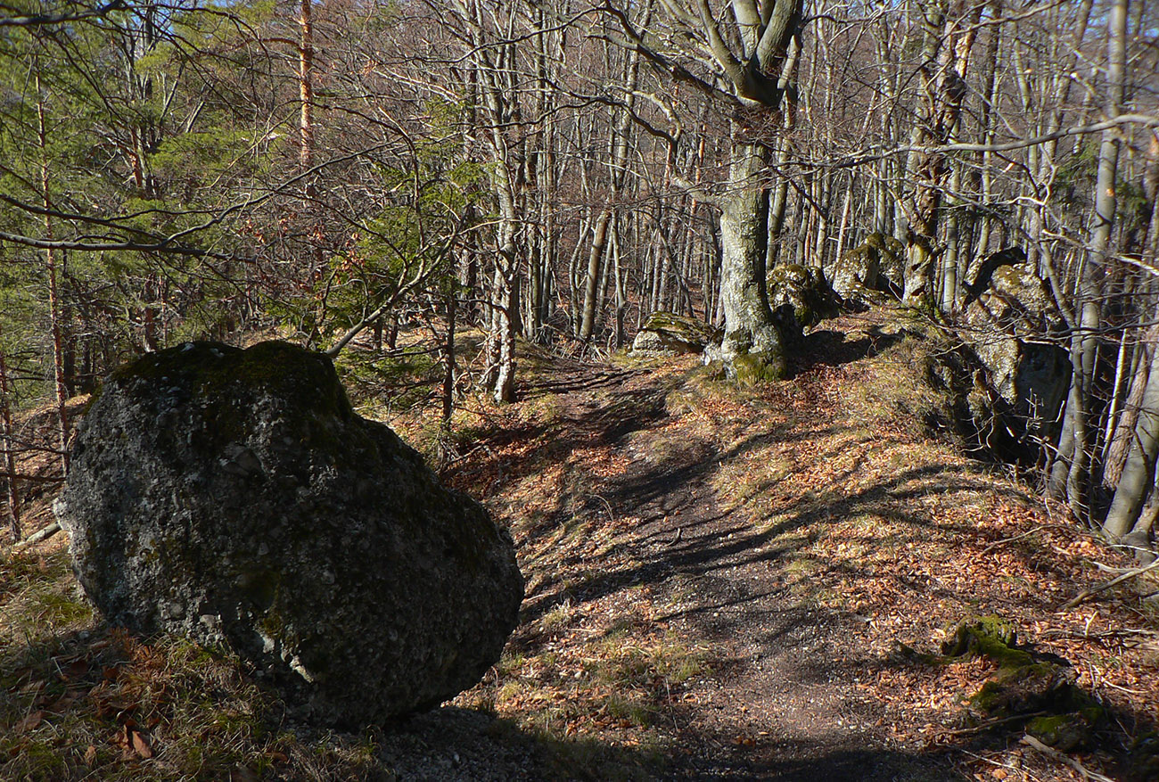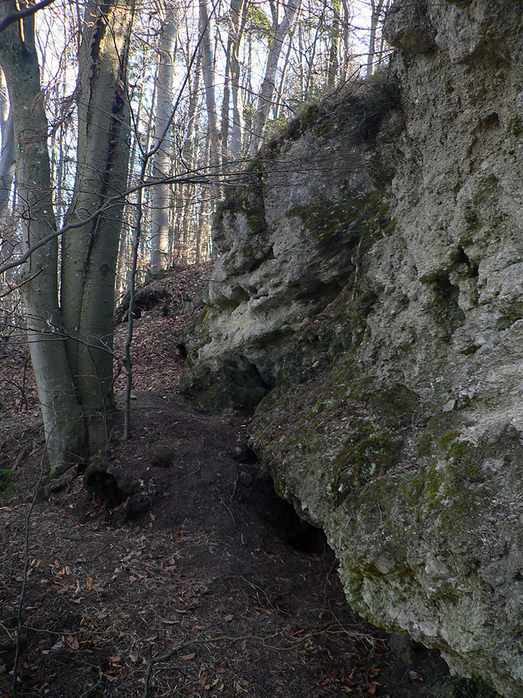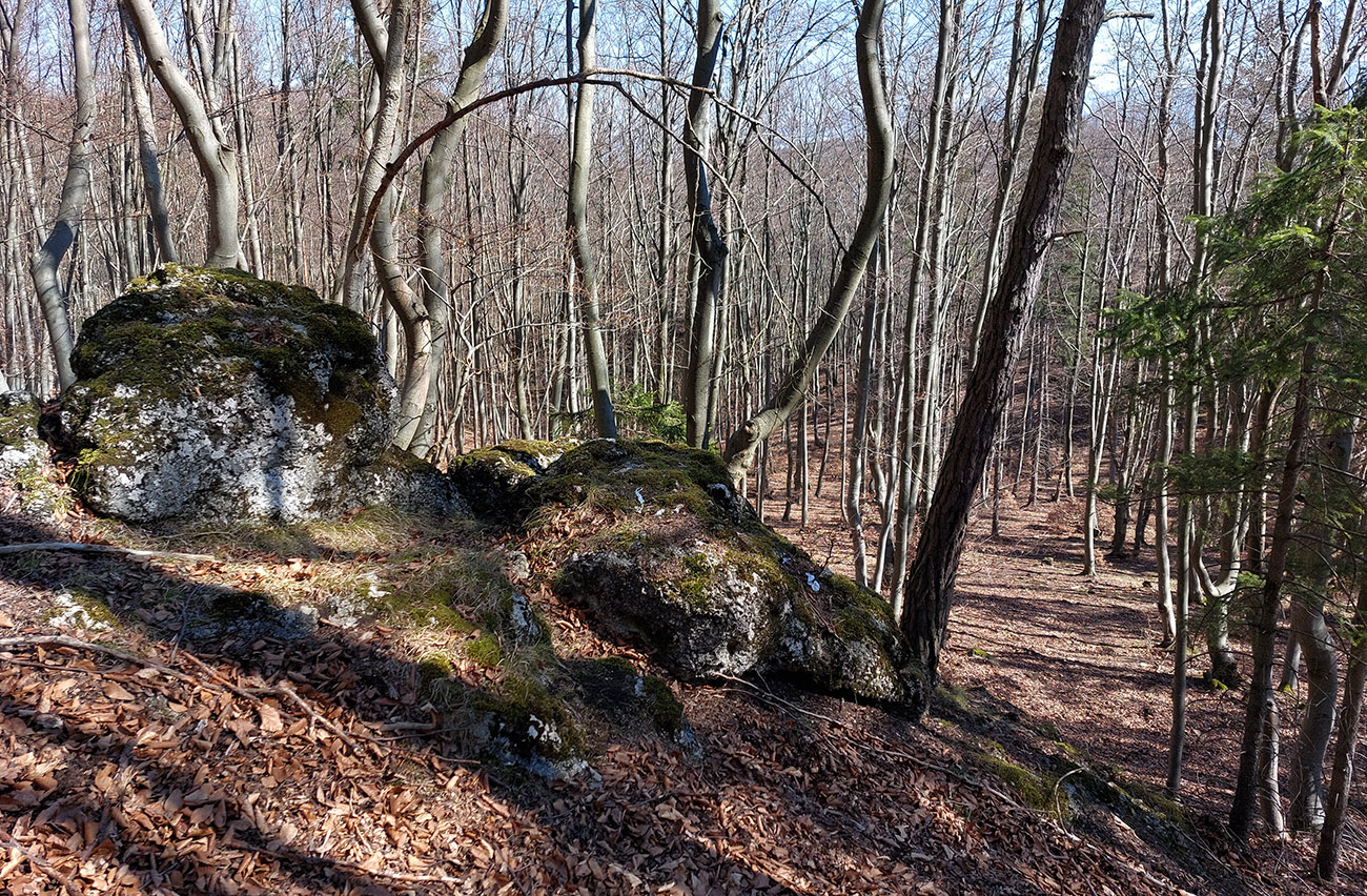 Keď začal chodník prudko padať k ceste do Babkova, našiel som si medzierku medzi bralami smerom dolu pod skaly a začal som sa vracať naspäť. Dalo by sa aj priamo zdola, z cesty, skaly končia až pri nej. Aj pod skalami sú chodníky – niekde výrazné, niekde len také zvieracie prte. Aj pár chlpatých domorodcov som vyrušil, aj trochu bordelu po lesných robotníkoch som vzal. S navigáciou žiadny problém, stačí si držať skalné steny po ľavej ruke a len sa motať hore a dole, ako sa komu chce.