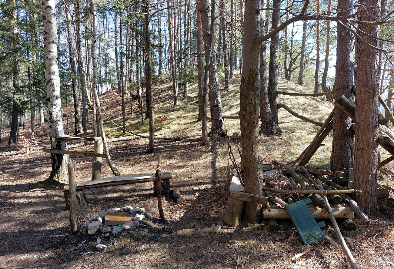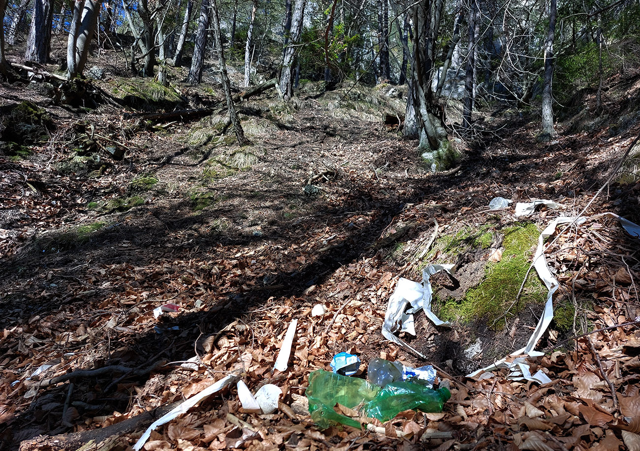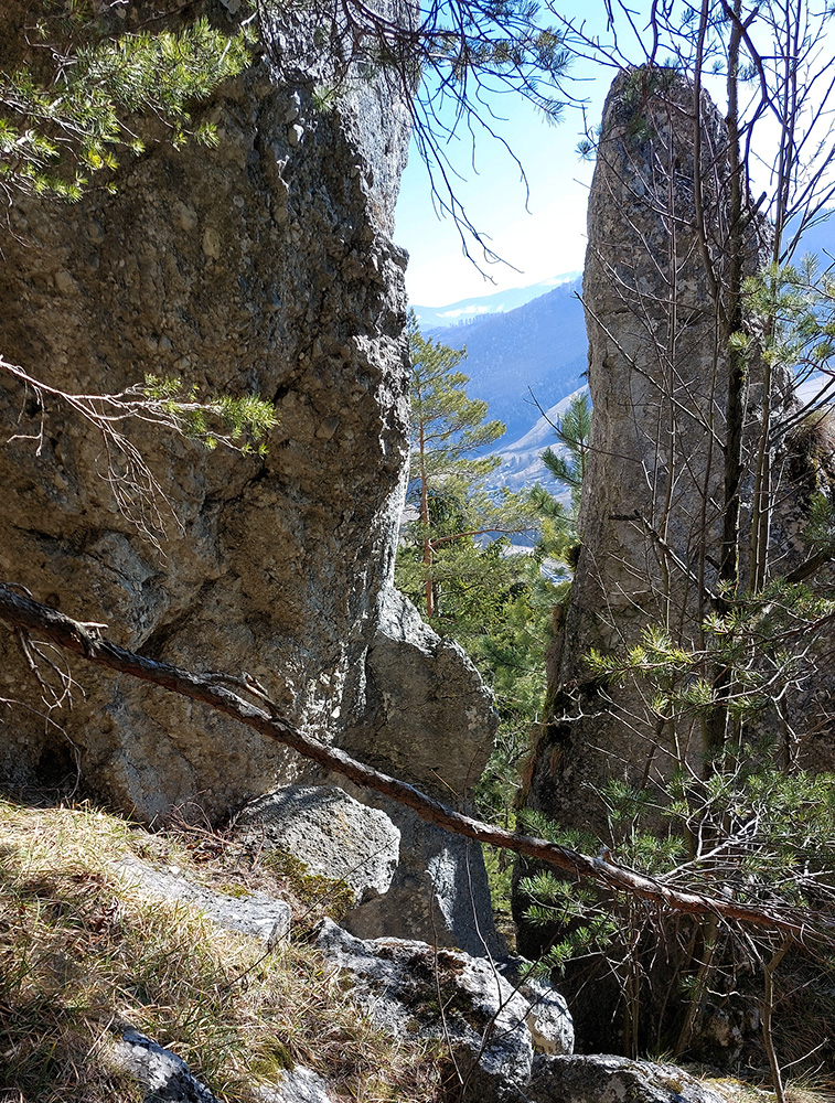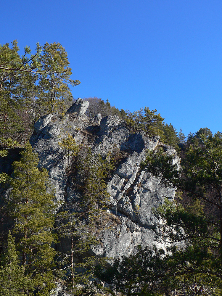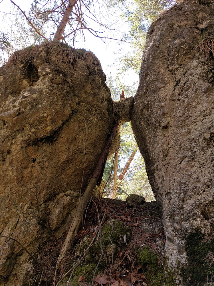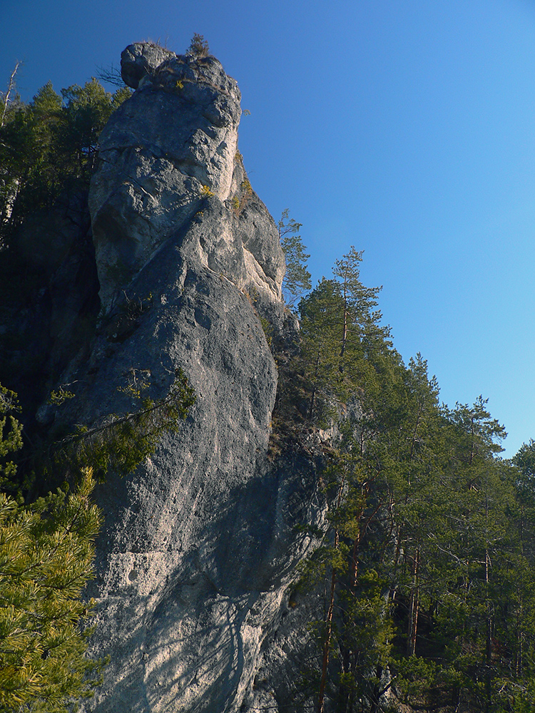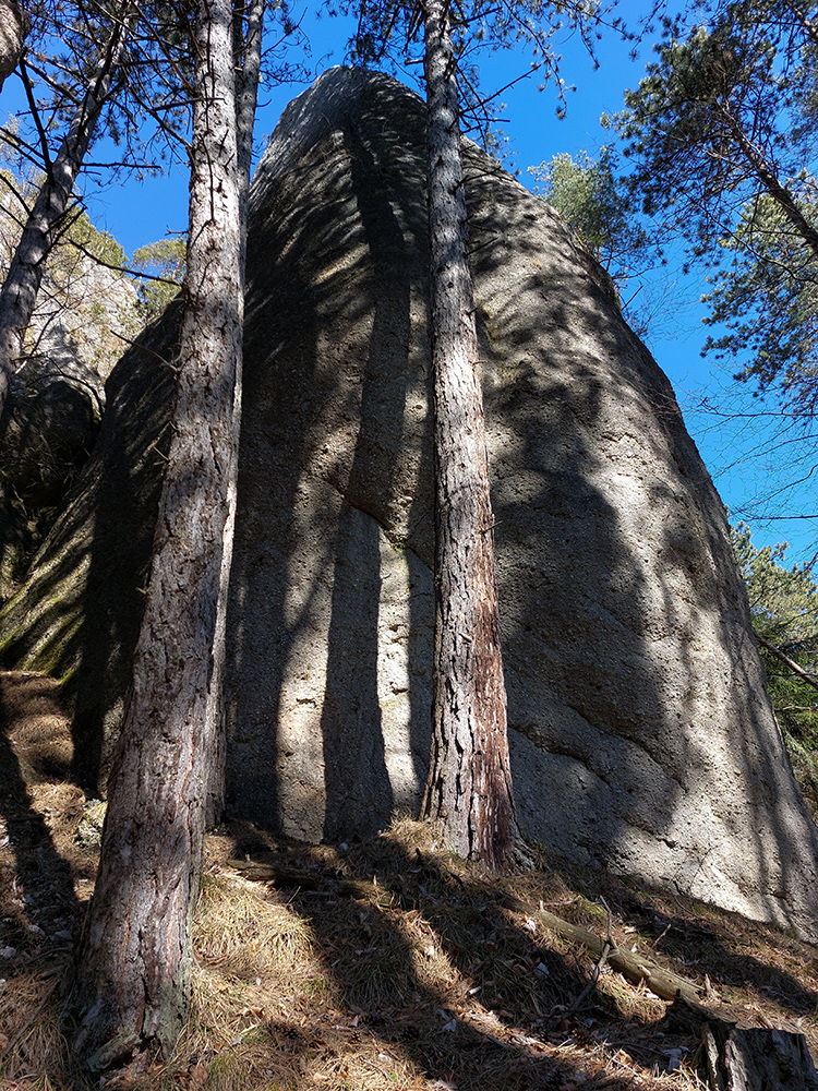 Keď začal chodník prudko padať k ceste do Babkova, našiel som si medzierku medzi bralami smerom dolu pod skaly a začal som sa vracať naspäť. Dalo by sa aj priamo zdola, z cesty, skaly končia až pri nej. Aj pod skalami sú chodníky – niekde výrazné, niekde len také zvieracie prte. Aj pár chlpatých domorodcov som vyrušil, aj trochu bordelu po lesných robotníkoch som vzal. S navigáciou žiadny problém, stačí si držať skalné steny po ľavej ruke a len sa motať hore a dole, ako sa komu chce.