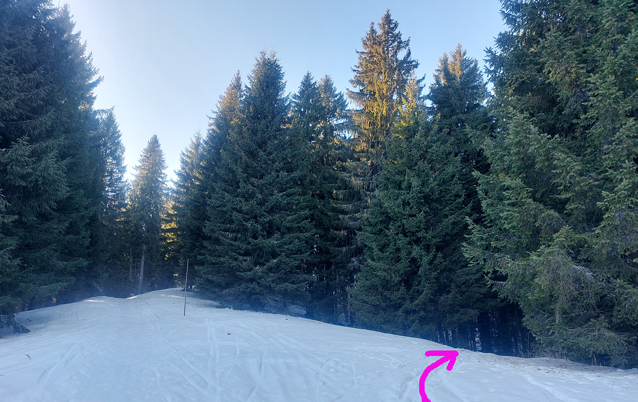 A ešte trochu času ostalo, tak som bol zvedavý na priechodnosť singlíka spod Vtáčnika k vrcholovej stanici sedačky. Aj tam len-tak-tak, na výšľap po tom poloľade to stačilo, smerom dole by bolo treba preniesť: