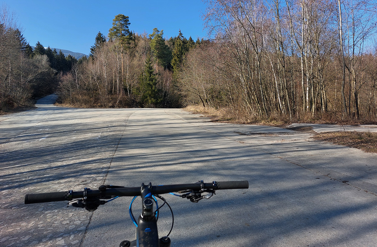 Krátky prejazd pomedzi domy na Podháji a už čakal tankodrom, aj so svojim povrchom á la „Paríž - Roubaix“. Potom aj asfalty a betóny, z holých krovín ešte viac trčali kopy odpadkov, no romantika jak sviňa! Ale ciest na výber, že som až netrafil presne tam, kam som chcel.