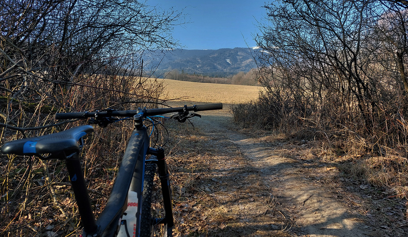Nevadilo, ďalej popod Les, ponad Ležiachov, tiež pekné, jazditeľné prostredie, a s výhľadmi na Veľkú aj Krivánsku Fatru. A konečne som sa otáčal na sever, čiže slnko v chrbte. Vietor tiež, no ten som ocenil až neskôr.