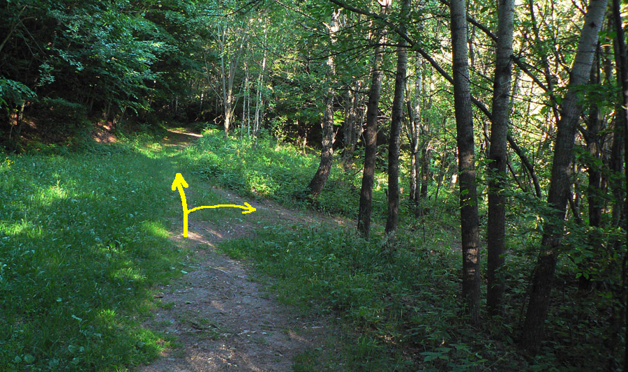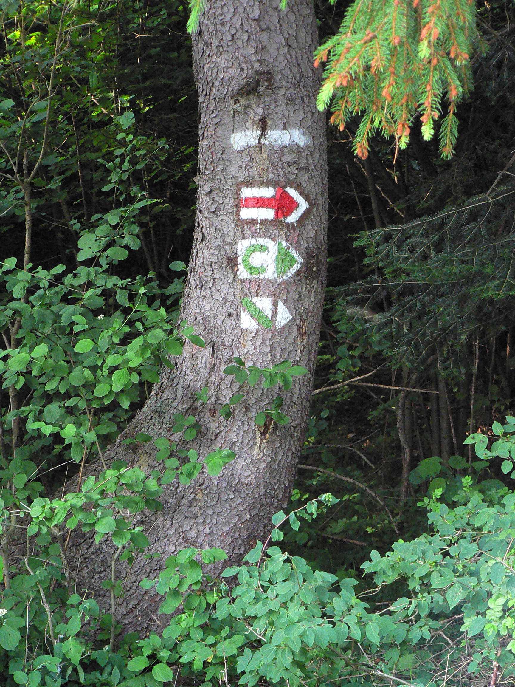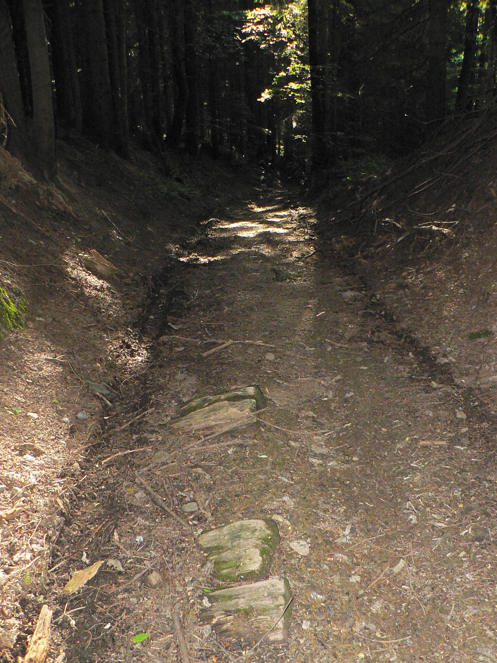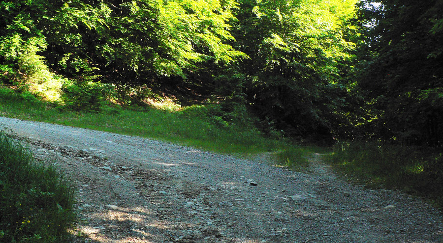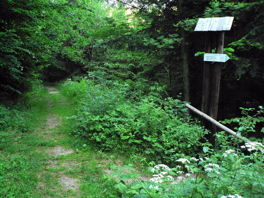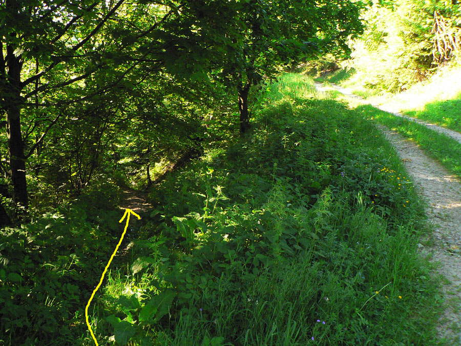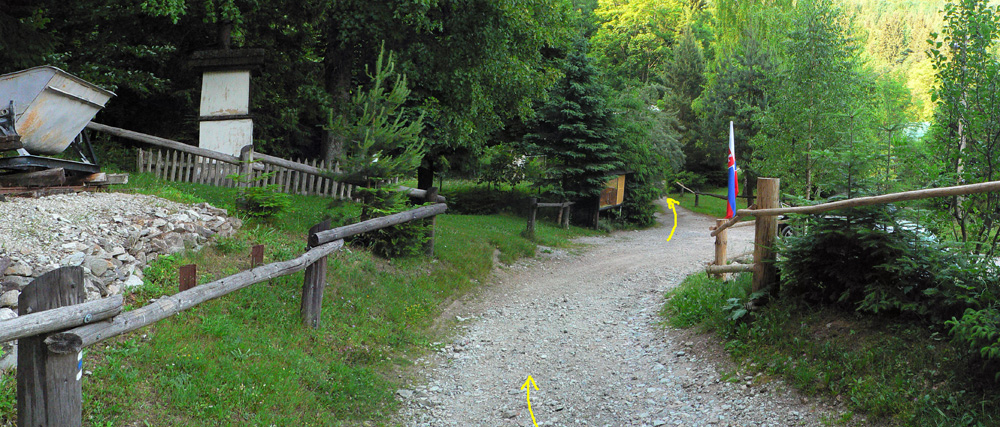Takže prvá úloha = vyštverať sa hore. Prístupových ciest je viac, najpohodlnejšia je asfaltka z Uľanky. Tabule nedajú zablúdiť ani cezpoľnému. Nejdem ale až hore do dediny, asfalt opúšťam smerom doprava asi v polovici (na druhej prudšej zákrute) a stúpam štrkovou lesnou cestou.