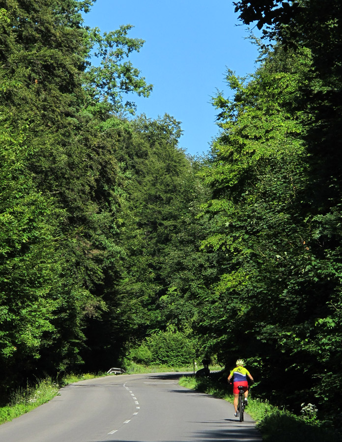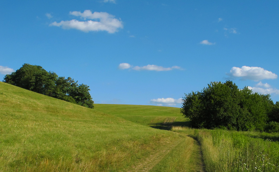 Dedinu len lízneme popri poslednom dome a naposledy stúpame: lúky, lesy (ďalší zelený tunel), ponad jeden kameňolom k druhému, a to je všetko. Už len dole po pohlavnej asfaltke na hlavnú, priamo na vrchol Mičinského kopca. Sme tam, kde sme začínali. Cesta do mesta je rýchla, dezény sa vyčistia :-)
