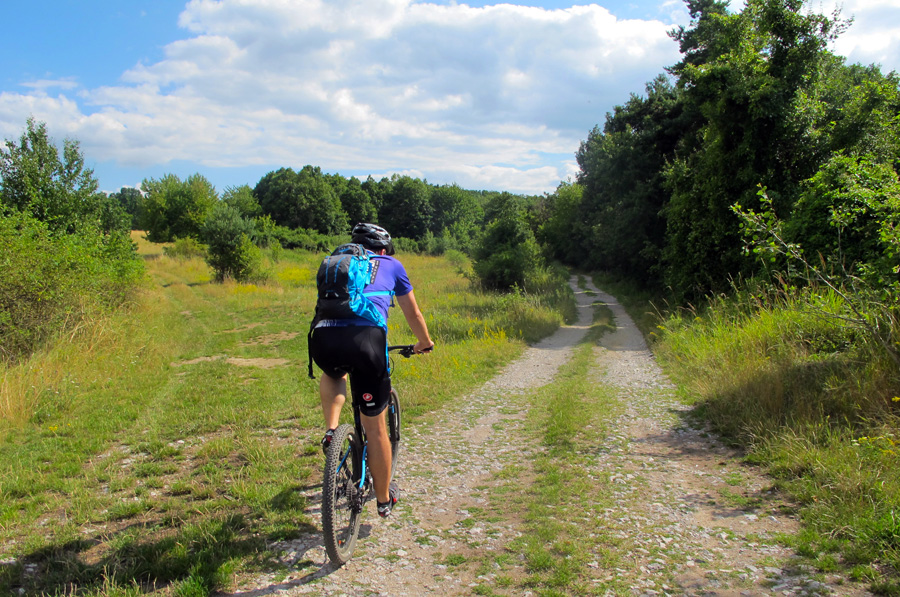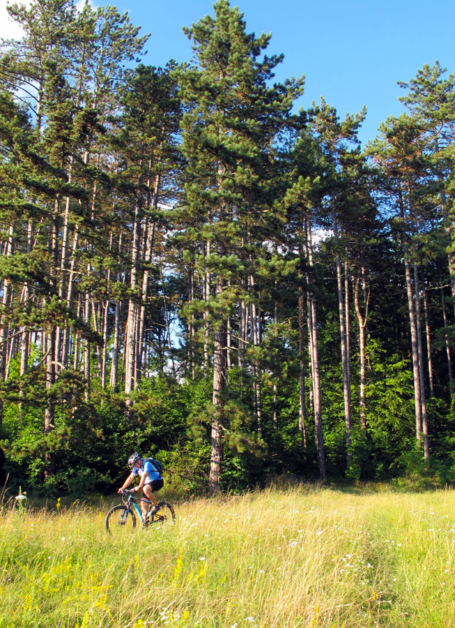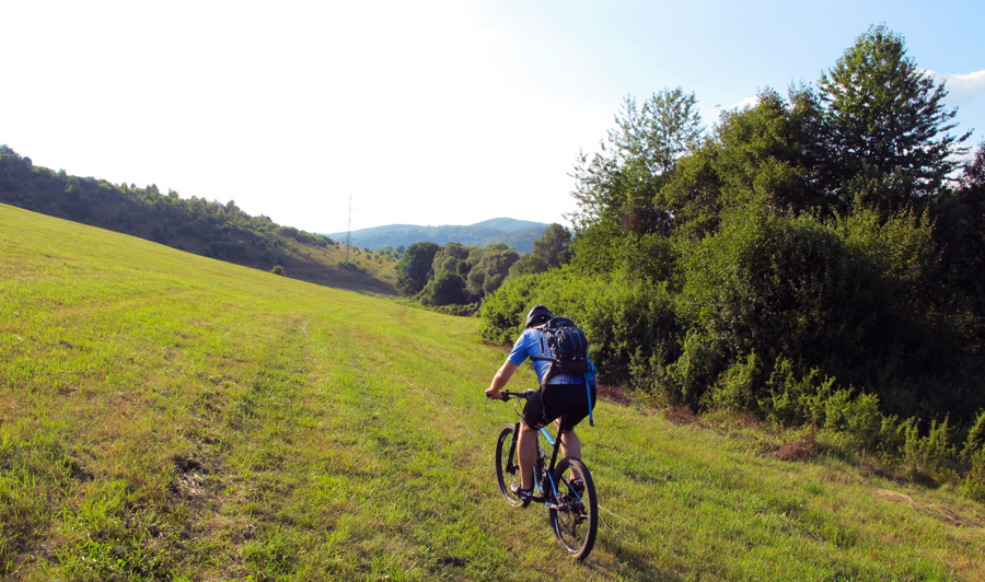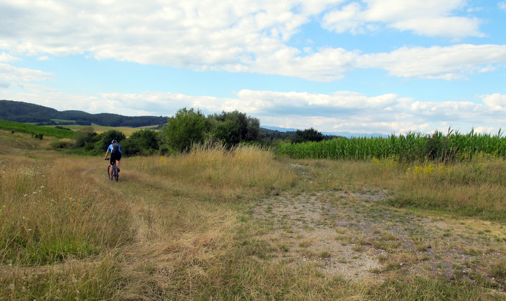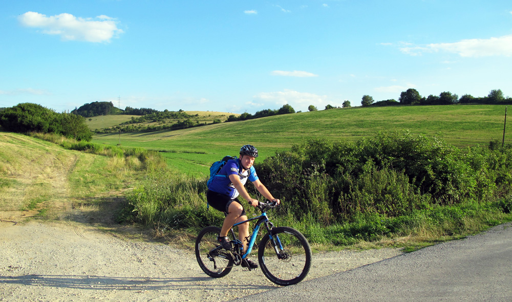Smerom na Čerín si užijeme trochu asfaltu, ochutnáme fajný samoser na Mičinských travertínoch a hneď za nimi sa hodíme doľava, stúpame popri záhradkárskej kolónii. Dobrá cesta sa na chvíľu vnorí do zeleného tunela, kde treba aj hlavu zohnúť, ale v pohode, žiadna žihľava a burina namotaná na reťazi.