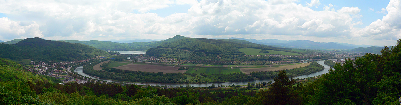 Potom sa už (na asi najdlhší čas na dnešnej trase) ponárame do zeleného ticha pod korunami stromov – ftáčiky vreštia, srnky skáču, no romantika jak bič. Prevýšenia nič moc, tak ani to blato moc neva. Pred Vápennou skalou, na ypsilonovej križovatke domorodec naviguje doprava, preč zo značky. Chce preskúmať vyhliadku na Bielej skale, kde vraj ešte nebol. A dobre to vymyslel: po pár stovkách metrov jemne z kopca je tu skalné bralo s výhľadom priamo naproti na Nosice a na celý meander Váhu okolo nich: