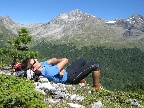 V Suldene to už poznáme, takže ideme rovno na parkovisko pri lanovke na Langenstein. Práve tu zišli z Ortleru štyria Žilinčania. Strašia nás, že to za jeden deň nedáme a podobné somariny. Spíme rovno na parkovisku pri aute s mnohohviezdičkovým výhľadom na hviezdy. O tretej ráno ešte za tmy budík, vyfón, kávička a o 3.45 vyrážame traja. V lese chvíľu trvá, kým sa správne nasmerujeme. Nad lesom si vychutnávame nádherný východ slnka.