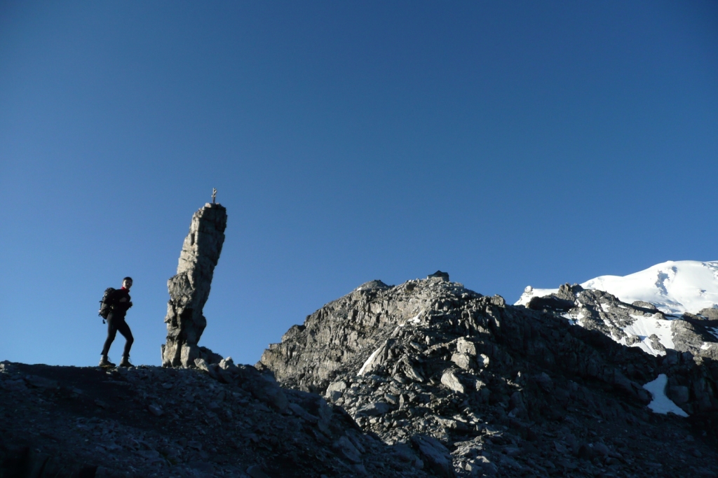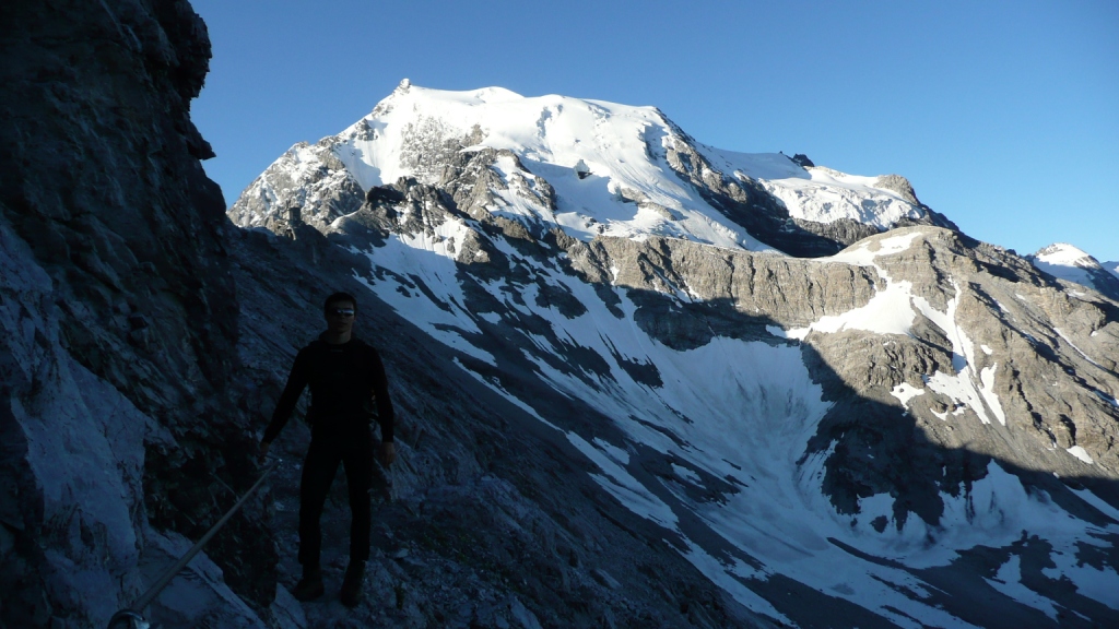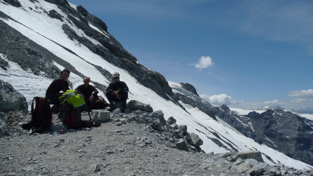 Zostup ozaj pohoda až po to strmé miesto na ľadovci, ktoré schádzame naviazaní naozaj veľmi, veľmi opatrne. Na skalnom hrebeni sme dve krátke miesta zlanili. Boli tam pripravené kruhy. Pivko na slnečnej terase Payerhutte je úžasným pôžitkom. Ešte treba dodať, že skalný hrebeň je miestami exponovaný, takže treba mať istý krok. Je to podľa mňa taká náročnejšia VHT. Určite ťažšie ako napríklad na porovnanie Glockner z Franz Jozef Hütte alebo Blanc cez Gouter.