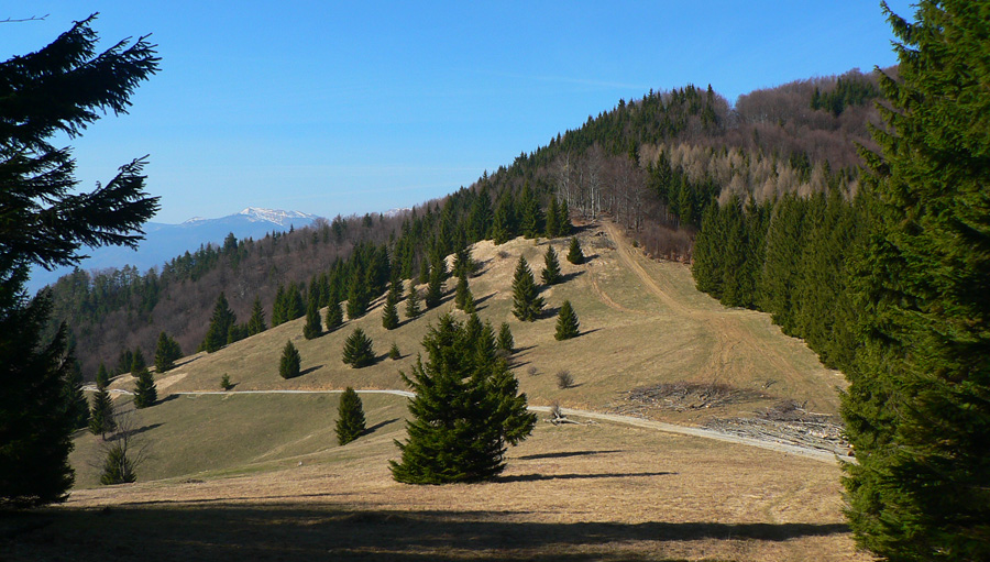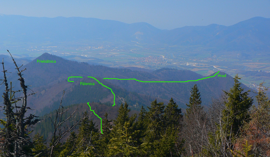 Z hradu sem je to asi na 2,5 hodiny, zablúdiť sa hádam ani nedá a je to mimo národného parku, takže sa to aj smie :-) No, keď môžu traktory, že? Pokračovanie zelenej značky z hradu sa tu priam núka, ktovie prečo nie je. Fotky povedia viac, v galérii sa striedajú s pohľadmi späť, aby bola cesta jasná aj v opačnom smere. Na mape lesných ciest, uchmatnutej zo stránky Národného lesníckeho centra (http://lvu.nlcsk.org/LC/), je náš hrebeň označený bledozelenou a bodkovanou čiarou, vidieť tam aj obe zvážnice (červená a zelená), ktoré naň vychádzajú medzi Prieložnicou a Pálenicou, aj tie lúky pod ním.