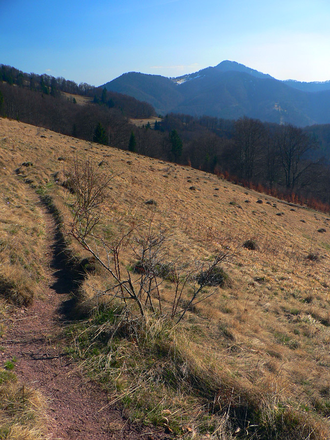 Čo ďalej? Samozrejme hore na Kľak. Veď na poludnie takej krásnej soboty škoda bežať dolu, keď voľby sú až do desiatej večer :-) Takže som si ešte užil zvyšky snehu na severnom svahu Kľaku, a potom už len sucho pod nohami v lesoch a na prebúdzajúcich sa lúkach plných šafranu. Cez Chládkové, sedlo Príslop a nolčovskú Maguru (jeden z najkrajších výhľadov na dolný Turiec a Krivánsku Fatru!) som sa dostal do Nolčova. Takto mi to z Podhradia trvalo celé asi 7 hodín, pritom skoro žiadne doliny a preveľa výhľadov - odporúčam!