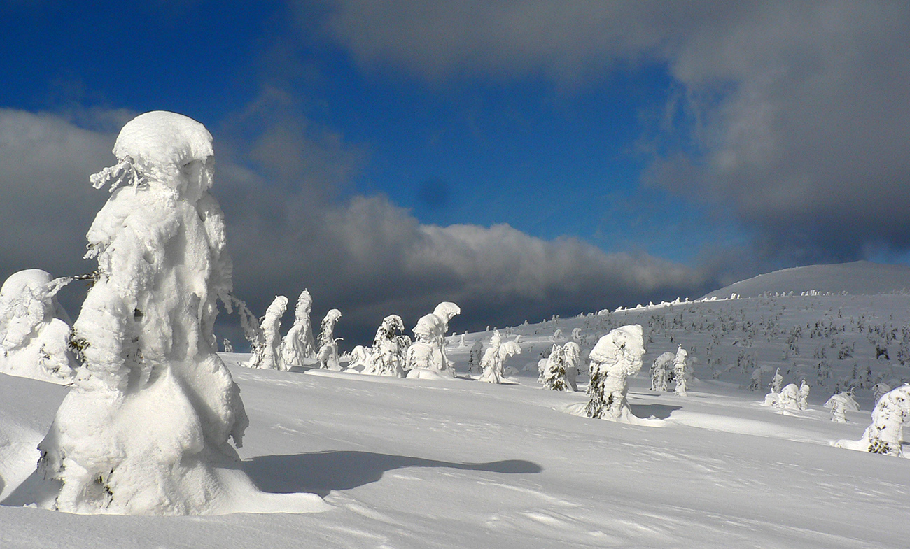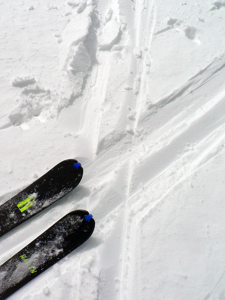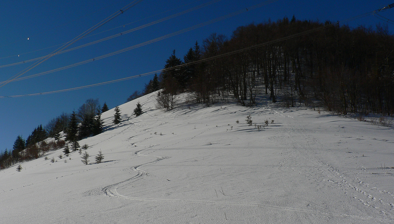 Po arktickom počasí sa zase dovalil hnusný odmäk, no prvé dni ešte vo vyšších polohách moc neuškodil. Naopak – aj dobre spravil, keď prilepil k zamrznutému podkladu nový sneh. Šialená zima, ako na hojdačke... Ale čo už. Šiel som teda vyskúšať tie vyššie polohy masívu Prašivej. Mal som viac variantov „denného programu“ podľa toho ako nohy pôjdu. Rýchlo sa ukázalo, že nejdú vôbec, tak som to nehnal po hrebeňovke, ale ostal som tam polyžovať. A dobre som spravil a nebol som sám – na starom ľade taká hutná, vetrom a už aj slnkom ubitá vrstva nového snehu, do 10 cm. To na juh. Od hrebeňa až do lesa takmer žiadny ľad. Len na hrebeni miestami trochu tvrdšie šindle, strungy, kto to už ako volá. Severy samozrejme tvrdé, vyfúkané, hrboľaté, tam som ani nešiel. Ale po nedávnom lavínovom poplachu ani stopy.