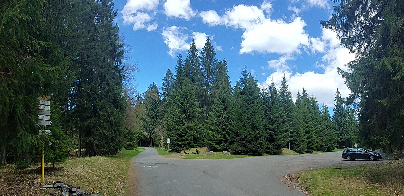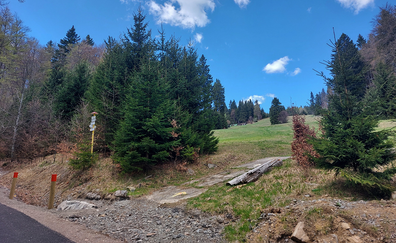 Pri posledných domoch miestnej časti Priehalina odbočka doprava, zas do strmého. Šípka navedie, značka snehových reťazí pomôže si uvedomiť. Cesta vchádza do lesa a asfalt je zrazu čierny a hladký. Za horúceho dňa poteší poriadny tieň.