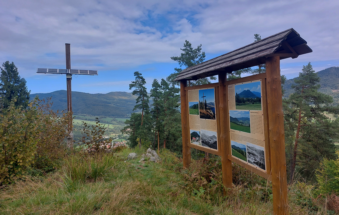A zas dole, no smerom k cieľu. Lenže v nohách ešte málo kilometrov a v karte veľa neoznačených kontrol. Začínal som tušiť zákernosť, lebo krmelce mali byť dva. A kde spraviť najjednoduchšie ten druhý? No v cieli predsa! Tak aj bolo – inšpirácia Malofatranskou stovkou 2014 jasná! Užili sme si výhľad od kríža na Mníšek a davaj do cieľa teda – len z opačnej strany, zatiaľ.