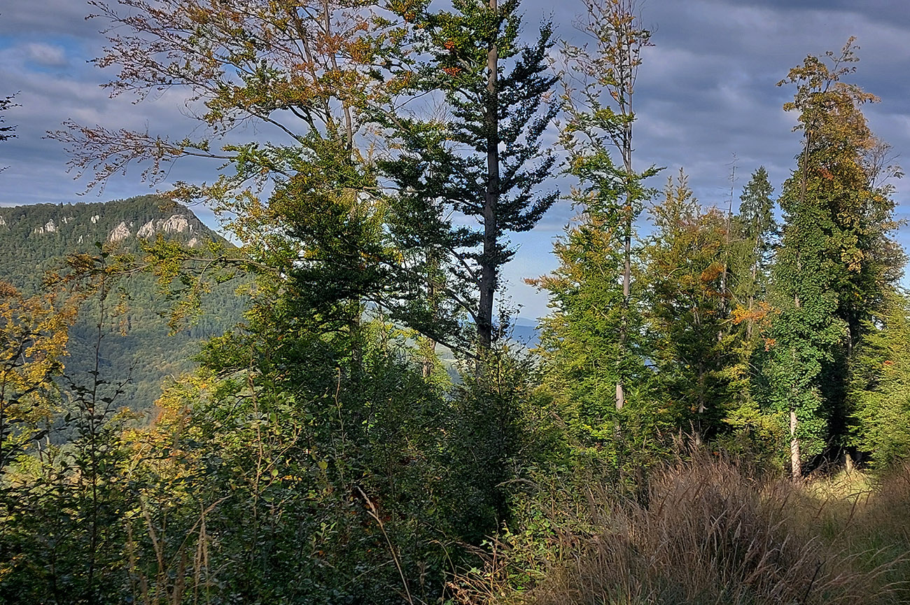 Aspoň som sa poriadne najedol! No len stúpaj potom dlho a prudko, s plným bruchom! A aj ďaleko, až na Skalu nad Slovinkami – mapa mi ukázala vari nejakých 15 km. Telo už haslo, ale čo bolo horšie – hasol aj mobil. Nejako rýchlo ubúdali percentá z jeho baterky – a bodaj by nie, keď som ho mal v ruke 10x častejšie ako na bežnej stovke, kde končím so 60 – 70%. Takže: menej fotiť, zapnúť lietadlový režim a mozog, mobil preložiť baterkou k telu, do tepla. Lebo napriek slnku moc teplo nebolo. Našťastie Skalu trafiť nebol problém, krásna je: