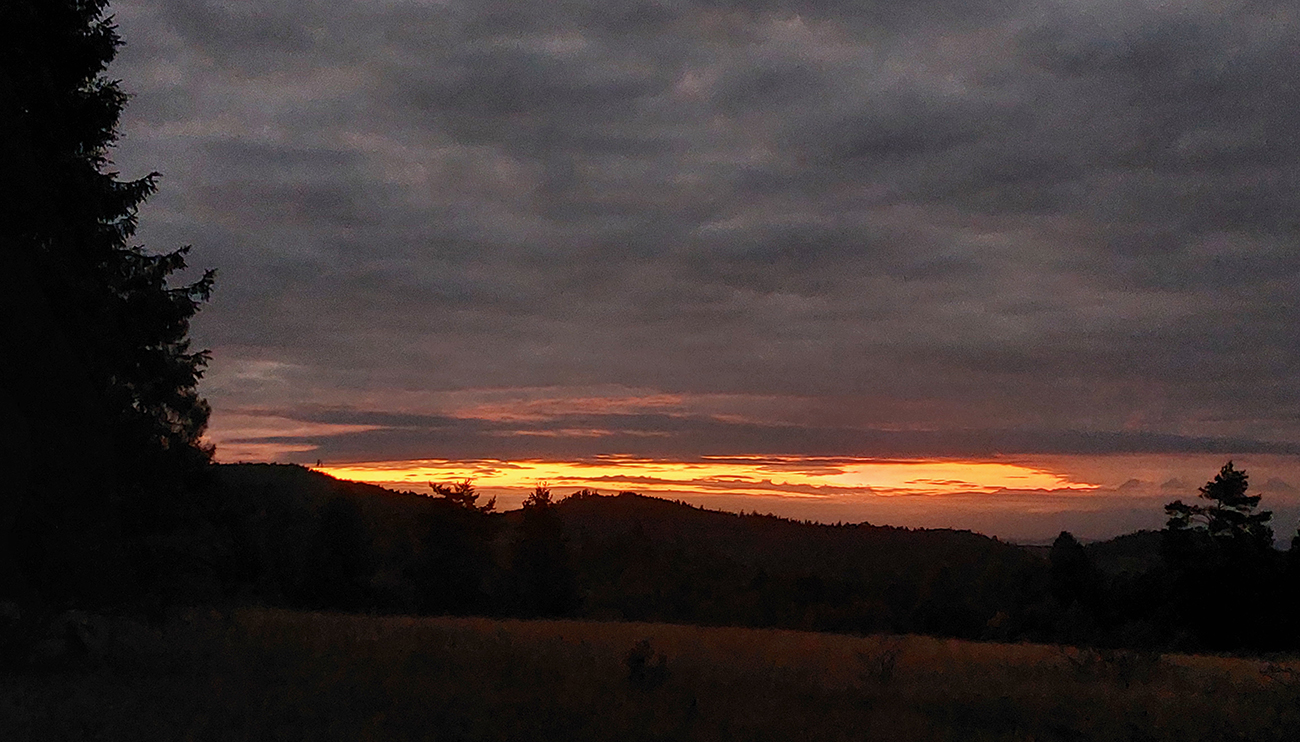 Lenže to bolo za svetla a tušil som, že nasledujúca kontrola nebude posledná. Vraj „bezmenná vyhliadka“. Hej, ale aj bez cesty k nej. Našťastie blízko Skaly a tiež za vidna, švihom po krásnych horských lúkach. Ibaže baterka klesla na jednociferné hodnoty!