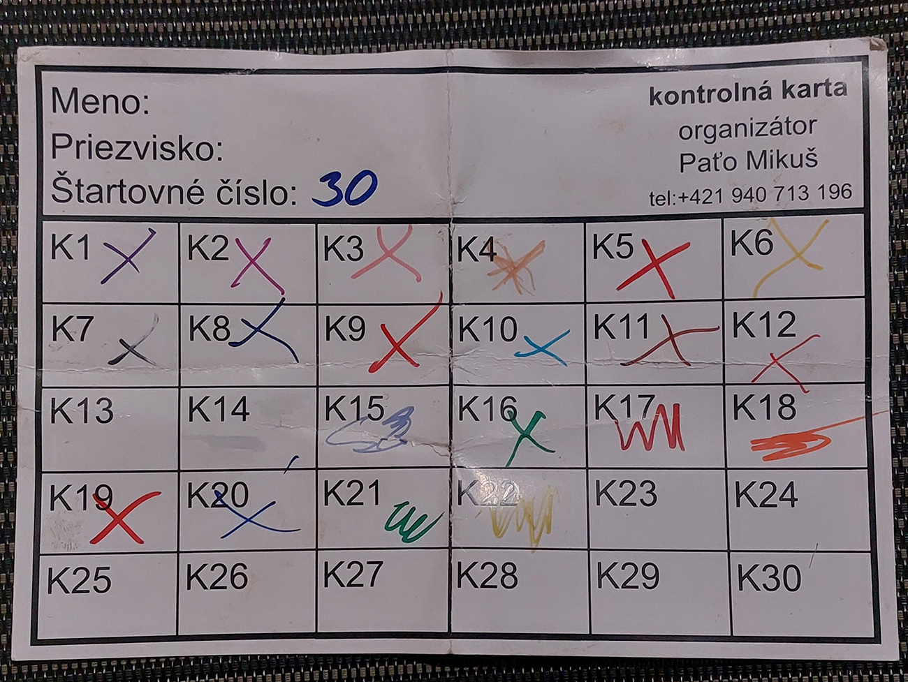 No nič, vytiahol som záchrannú chémiu, nech sú sily do záveru v nohách aj v hlave, mobil som vyťahoval tak málo, ako som si trúfol, aj to s malou dušičkou, či ešte ožije. S nádejou, že musím trafiť ten Ostrý vrch, ktorý je tesne nad cieľom a bude to isto už posledná kontrola, a tam prípadne niekoho počkám. Lesy, lúky, zvážnice, trafil som, hurá! Aj som sa dočkal záchrancov, takže smerom dole do cieľa to už bola radosť kráčať temnou nocou. Ufff, bolo to na hrane – keď som pichal mobil do zástrčky, hlásil JEDNO percento. Statočný výrobok!!!