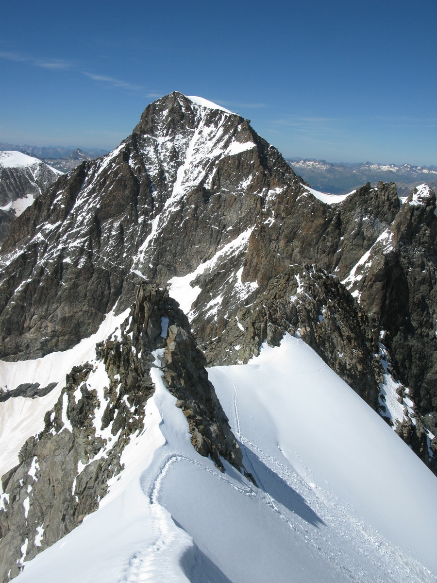 Biancograt - táto obľúbená túra bude túto sezónu ešte viac vyhľadávanejšia. Výstup na Matterhorn totiž značne skomplikuje kôli prestavbe zatvorená Hornli hutte. Toľko mi prezradil jeden známy horský vodca. Po dllhom období dažďa sa v posledných dňoch konečne vyčasilo a tak som dnes využil výborné počasie a bol som sa pozrieť aké sú podmienky na Biancograte. Túto túru totiž značne ovplyvňujú snehové podmienky a tak dokáže byť zakaždým úplne iná. Nebolo tomu ináč ani dnes. Snehové podmienky sú výborné. V stúpaní do sedla Prievlusa je veľa snehu, okrajová trhlina zasypaná, na Biancograte žiadny vodný ľad a aj cez záverečný kľúčový hrebeň som sa dostal v pohode. Viacej už z fotiek.