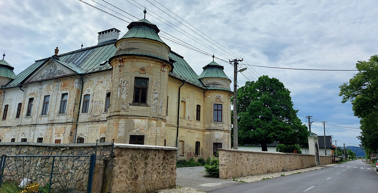 Okolo tej spodnej minerálky som ani nešiel, skrátil som to popri požiarnej zbrojnici a už som aj stúpal proti toku Zolnej: nebadateľne síce, ale proti solídnemu vetru – cez Dúbravicu na Poniky. Záplaty všetkých odtieňov sivej a všakovakých tvarov, tu už cesta na opravu dlho a márne čaká. Podobne ako ruiny dúbravického kaštieľa.