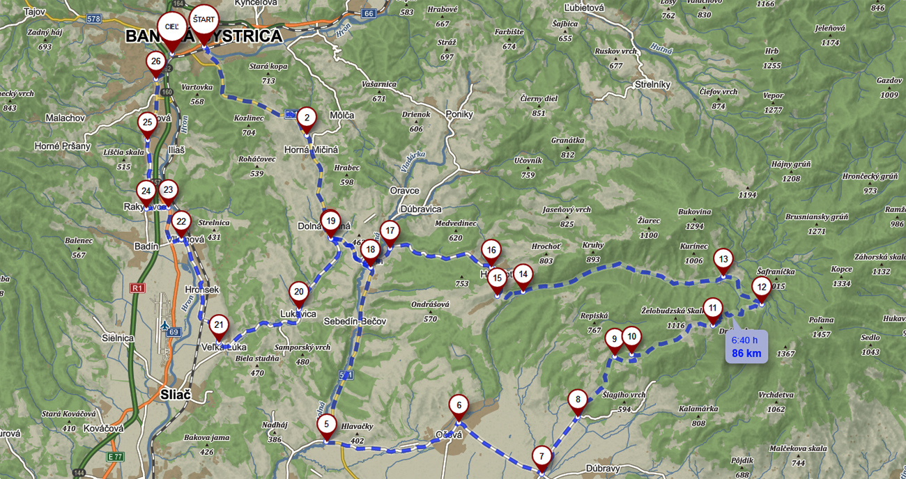 Už dlho som sníval o tom, že si prejdem sedlo Príslopy pod Poľanou na cesťáku, lebo asfalty z oboch strán tam vedú takmer exkluzívne a keby aj nie, už vlani som cesťák vyškolil aj na zvážniciach, trochu hrubší povrch do kopca mu vadiť nebude. Dokonca som sa tam chcel trepať na zimáku už oveľa skôr, len to nejako nevyšlo. Malo by to byť slabých 90 kilákov a 1300 výškových, čiže nič moc, ale na úvod by malo bohato stačiť. Hodinkám je dobre doma v šuflíku, takže aspoň takto, podľa naklikanej trasy v Mapách.cz: