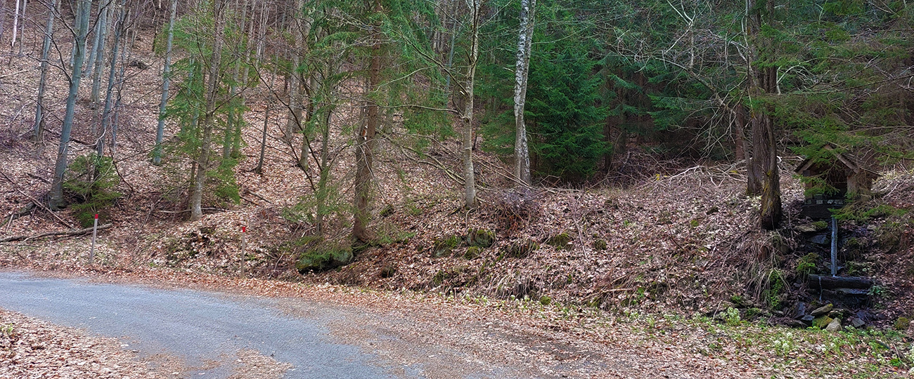 Samozrejme cesta sa už položila takmer do vrstevnice, aj asfalt skrásnel, iba tie ovčie bobky som poctivo obchádzal, keď už som taký fajnový... Od smerovníka ešte krátka výhľadová kochačka, najmä na sever k Bukovine, ponad "zátišie s elkátéčkom". Potom už zase ponor do lesa a na úvod pohodový zjazdík, v prvých kilometroch len mierne sklonený, a ešte spestrený dvoma brdkami a dvoma studničkami. Tie by v horúcom lete veeeľmi potešili. Okrem mňa sa tu motali aj iné zvery, len také kopytnaté, parôžkaté a občas brechajúce.