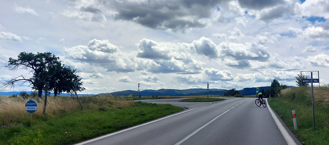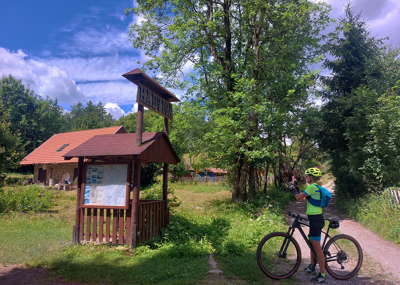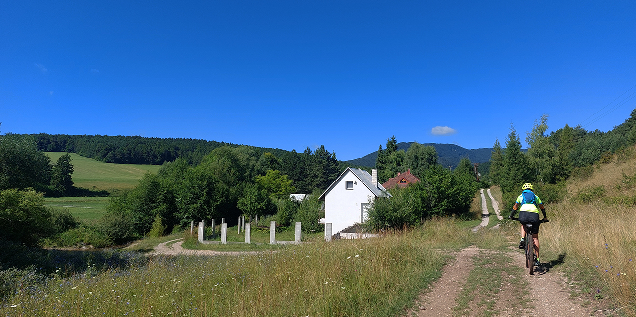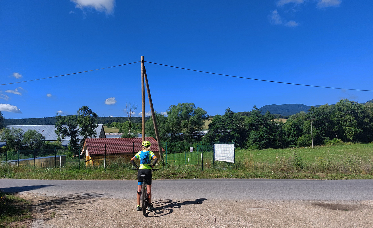 Dole do Brieštia je to taká trochu hrboľatejšia cesta lesom, ale nič nezvládnuteľné, aj pre začiatočníka. Potom len zošup dedinou a nad obchodom doprava, stále po cyklotrase, lebo samozrejme Hadvigu sme nemohli obísť. Krátke stúpanie zárezom cesty a za horizontom znovu pekná pasienková krajina.