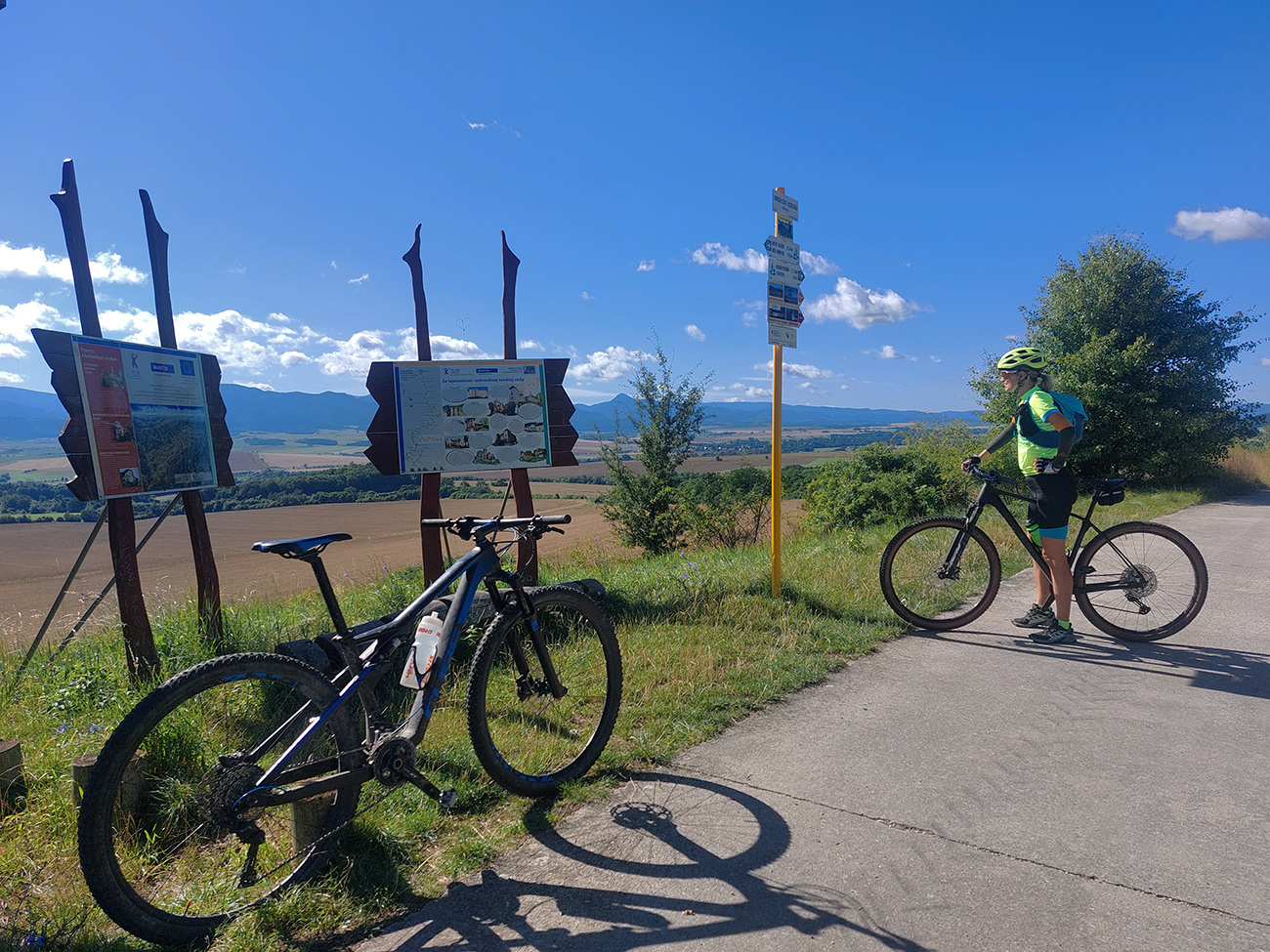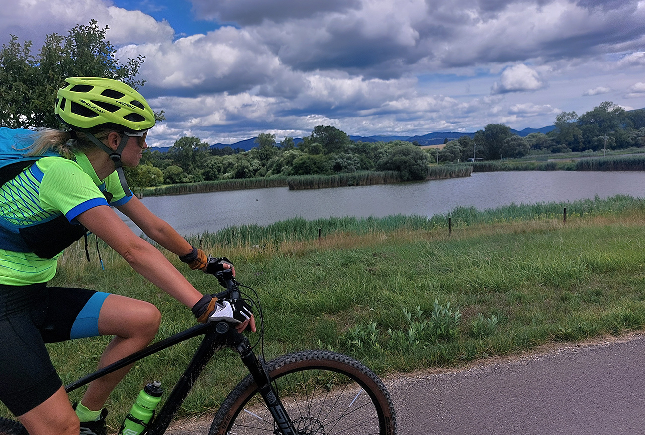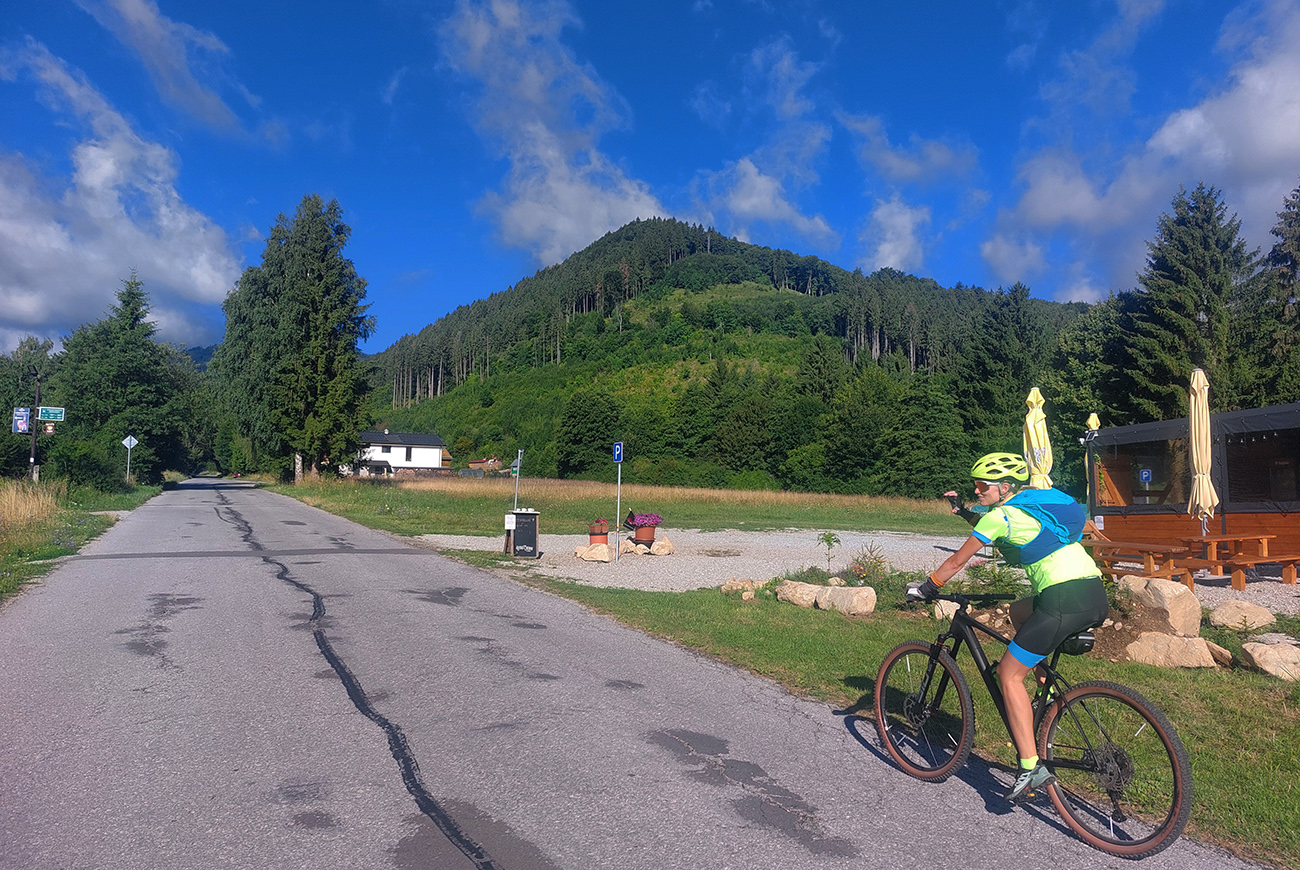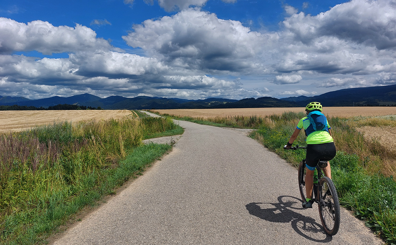 Dole do Brieštia je to taká trochu hrboľatejšia cesta lesom, ale nič nezvládnuteľné, aj pre začiatočníka. Potom len zošup dedinou a nad obchodom doprava, stále po cyklotrase, lebo samozrejme Hadvigu sme nemohli obísť. Krátke stúpanie zárezom cesty a za horizontom znovu pekná pasienková krajina.