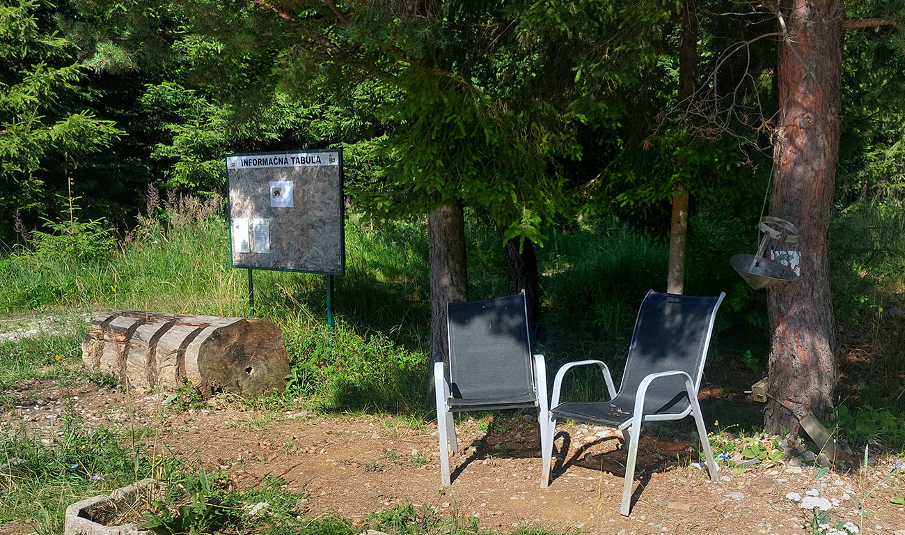 Potom tanková traverzuje horný okraj lúk popod les, takže výhľady grandiózne, cez kotlinu na východ na Veľkú Fatru. Aj dve rozhľadne sú cestou.