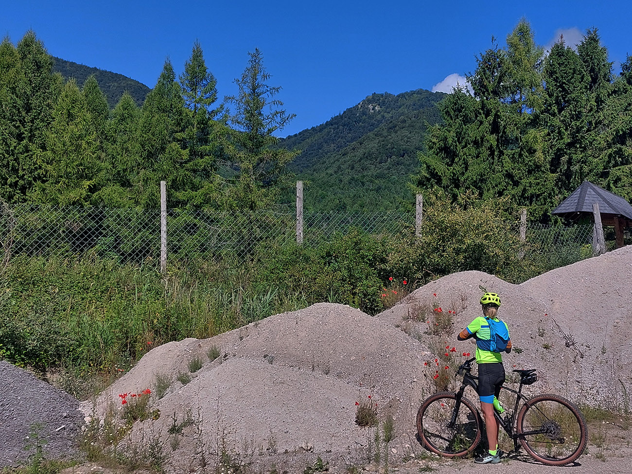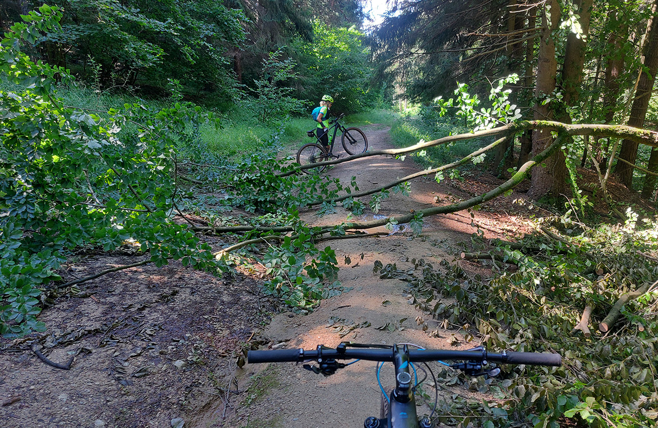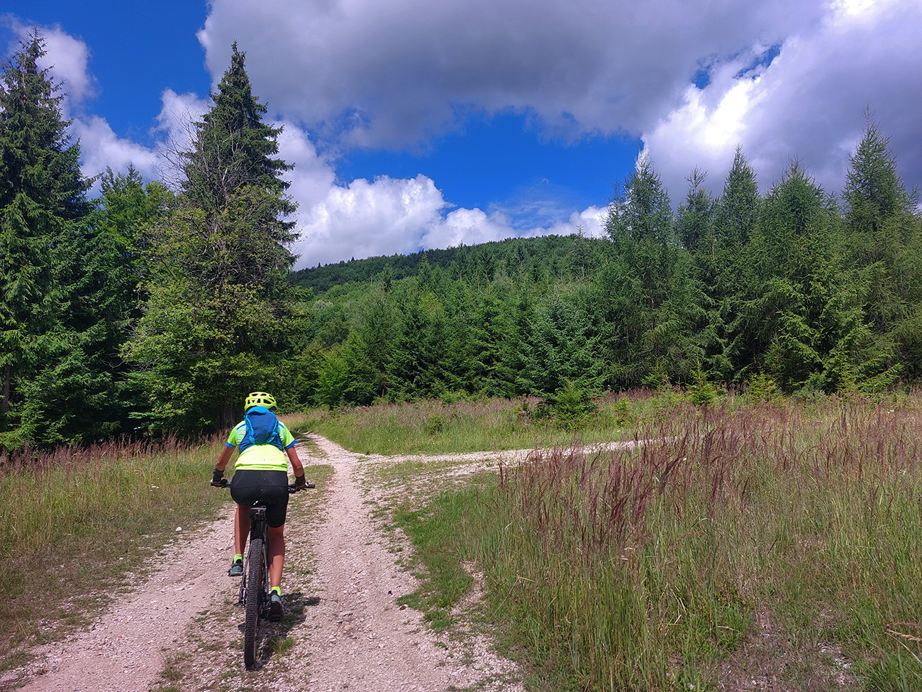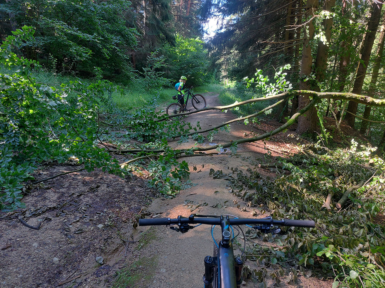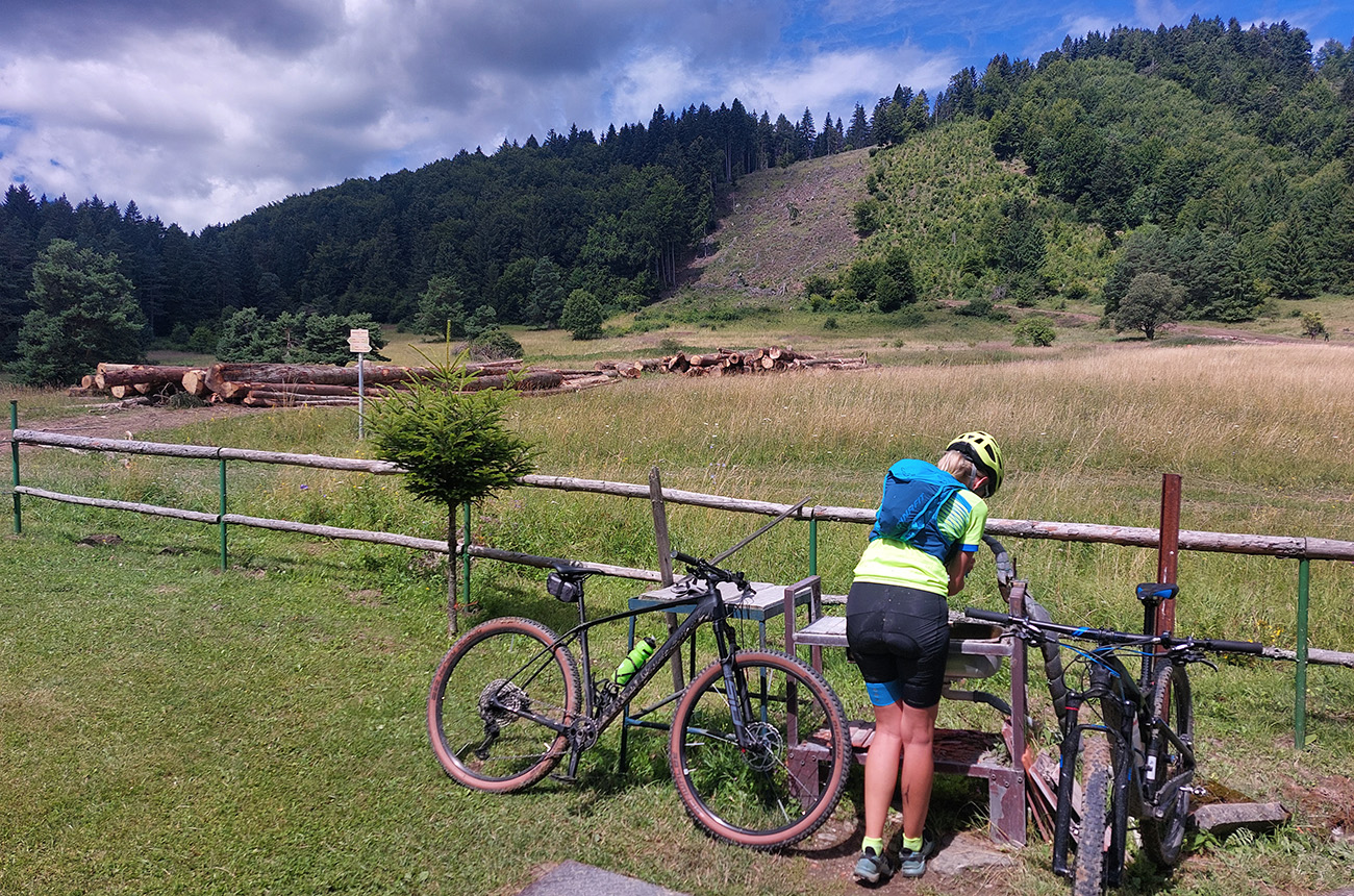 V ústí Trebostovskej doliny preč z asfaltu do lesa, serpentínou okolo muničáku a dole do Valčianskej doliny – nenáročný, nehrboľatý zjazdík, peknou bočnou dolinkou, tak pre spestrenie. Akurát po búrke čerstvá preliezka cez chodník, ale s tým sa počíta, nevadí.