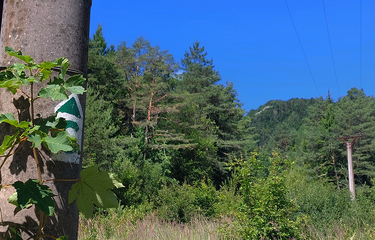 Z Vrútok od stanice je to jednoduché – pomedzi rodinné domy hore po ceste vedúcej na Hole, ale pár stoviek metrov pod rampou doľava na veľmi príjemnú šotolinovú cestu lesom, až na Podstráne. Po nočnom fronte popršané vlhko, ale cesta použiteľná, stačilo to vsiaknuť. Výhľadov minimum, len cez pár mladších rúbaní dole k mestu: