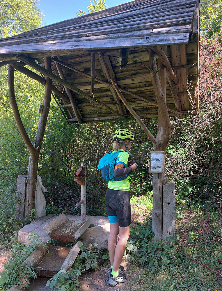 Ešte šotolina pomedzi polia, trochu asfaltu na Dubové a už sme ochutnávali, priamo pri Turci, druhú minerálku – trochu sýtejšiu, ale stále výbornú na pitie, nie ako ten ekrazit, čo ledva čurká vyššie nad Budišom a ľudia naň stoja v radoch.