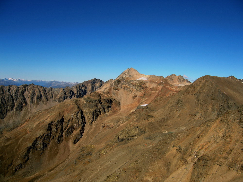 Z vrcholu sú výborné výhľady na všetky strany, ale predovšetkým na masív Ortlera a Konigspitze (Gran Zebru)