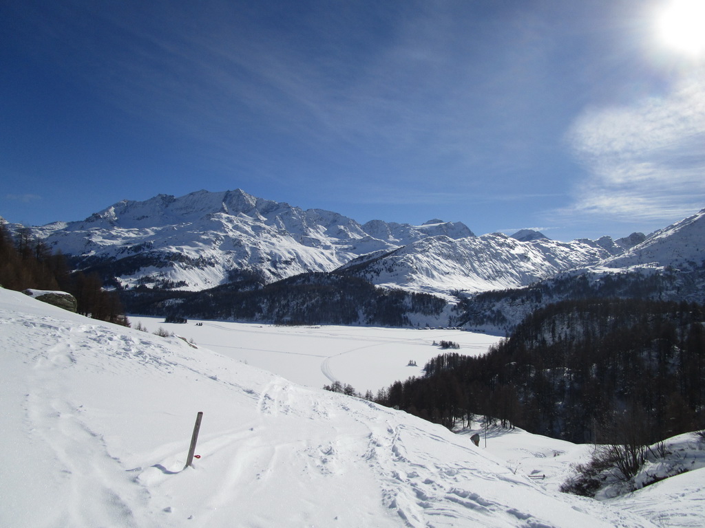 Na túru štartujeme od parkoviska pri jazere pred reštauráciou Plaun da Lei. Najprv šliapeme hore po cestičke v zime udržiavanej smerom ku letnému sídlu, skupinke starých štýlových domčekov s rovnakým názvom: Grevasalvas.