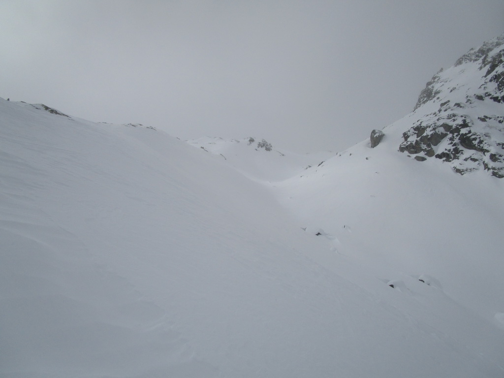 Odtiaľto stúpame po hrebienku, kde sme v bezpeží pred lavínami a pomedzi vysoké skalné mužíky sa mierne traverzujúc vľavo dostaneme ku záverečnému výšvihu. Na lyžiach sa dá vystúpiť až na vrchol pýšiaci sa úžasnými výhľadmi. Návrat tou istou trasou.