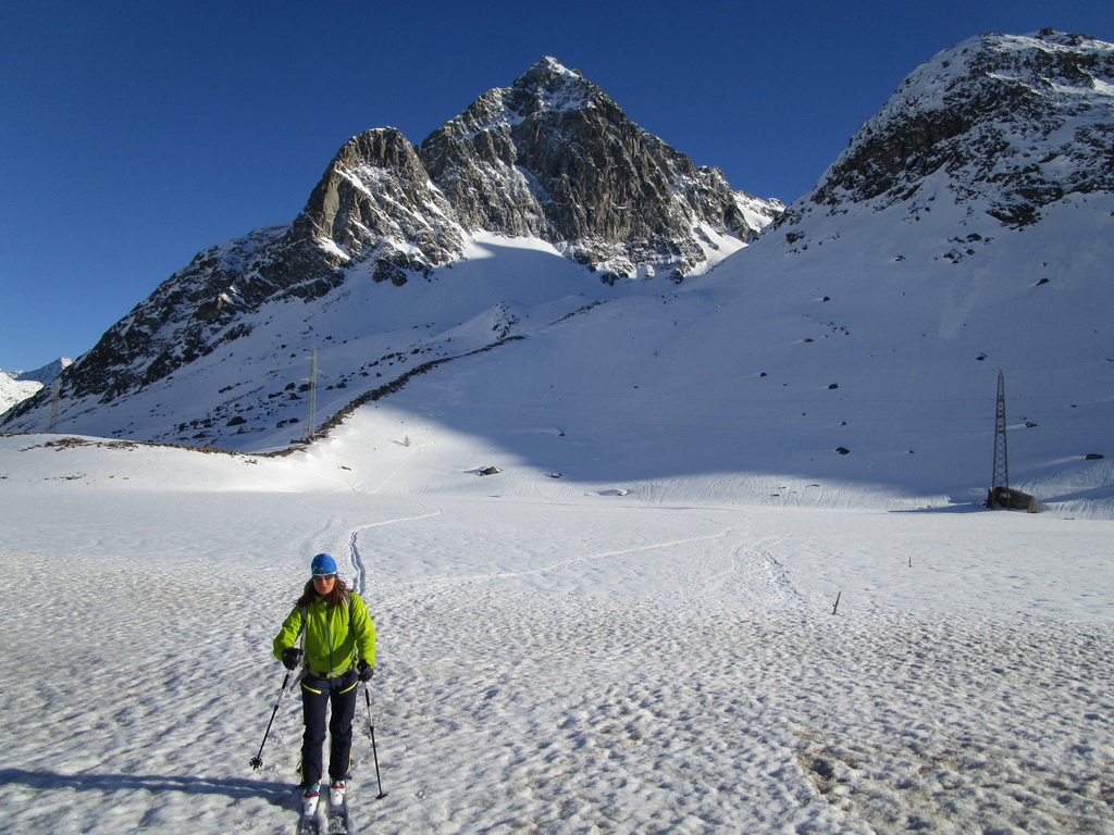 Jedna z odporúčaných altrenatív je aj použitie sedielka (Fuorcla Lagrev 2863m.) pod vrcholom Coluonas cez ktoré sa dá prejsť do susednej dolinky a pridať niektorý z jej skialových cieľov...