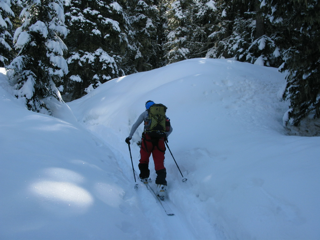 Po hodnej chvíli prepletania pomedzi stromy sa konečne dostávame na slnko. Snehu je všade "na mrte". Ťažko sa dá zažiť niečo krajšie. Na oblohe ani obláčik a my sa pomaličky blížime k nášmu cieľu.
