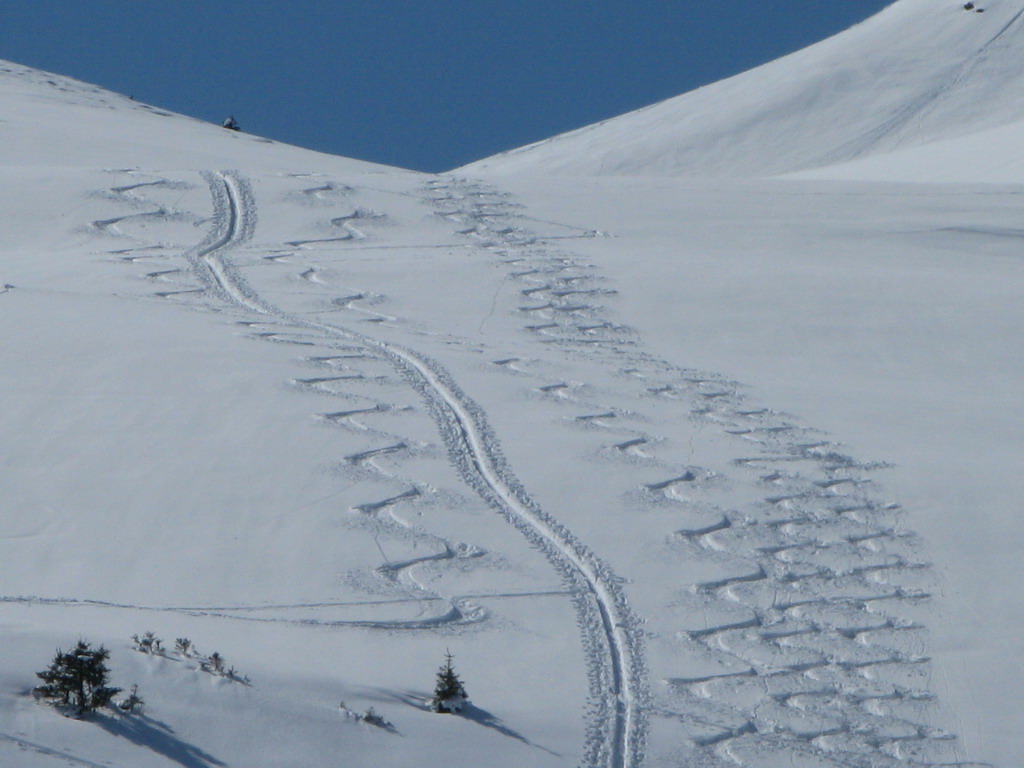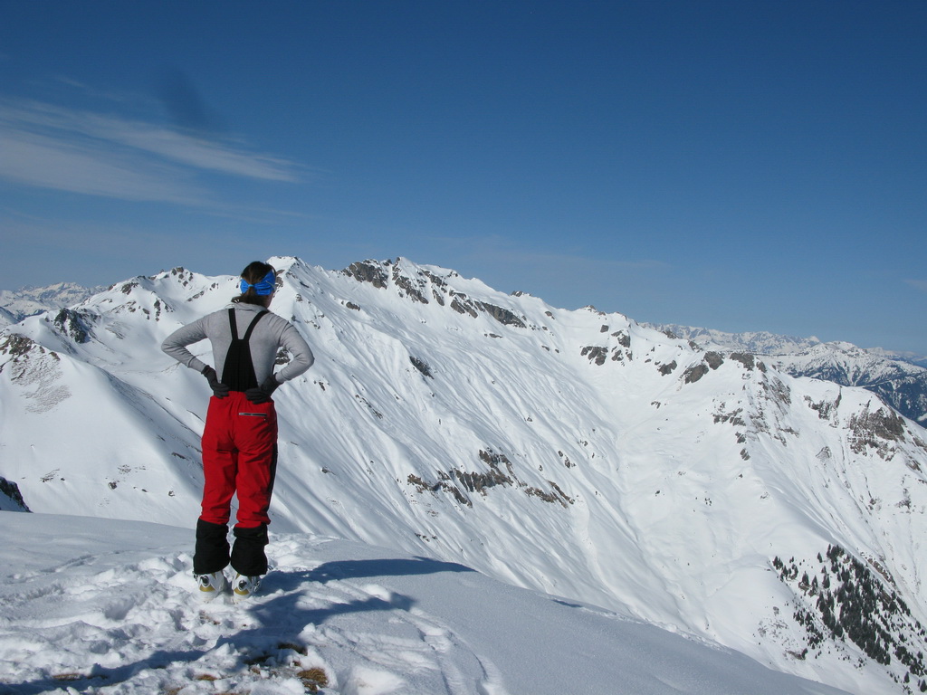 Väčšina dnešných návštevníkov je už dole. My sa nikam neponáhľame. Na vrchole konečne dobiehame aj skialpinistu samotára, ktorý šiel celý výšľap kúsok pred nami. Na naše veľké prekvapenie zisťujeme, že je to asi 70-ročná babka... Nuž iný kraj, iný mrav - toto zatiaľ doma ešte nezažijeme...