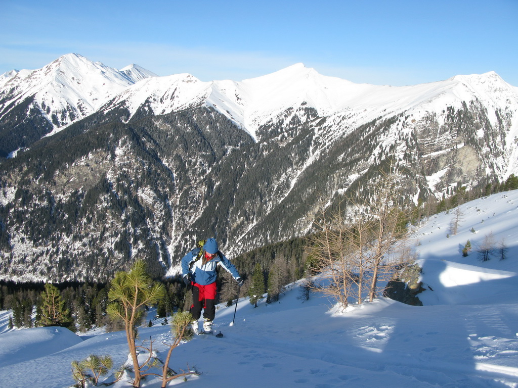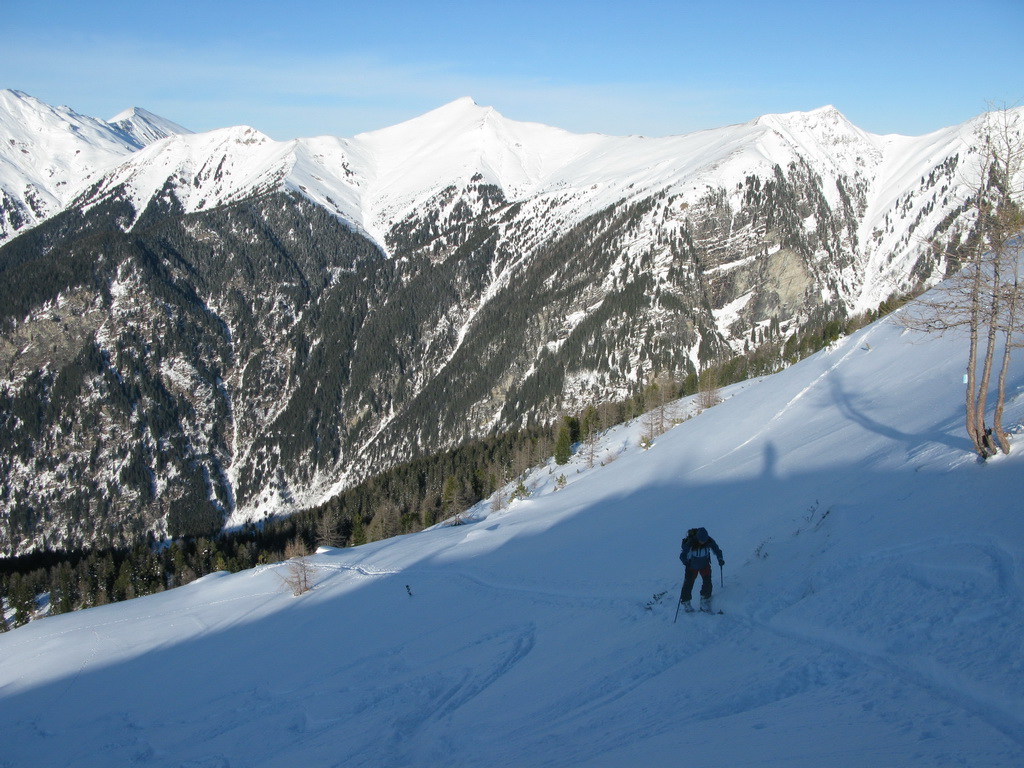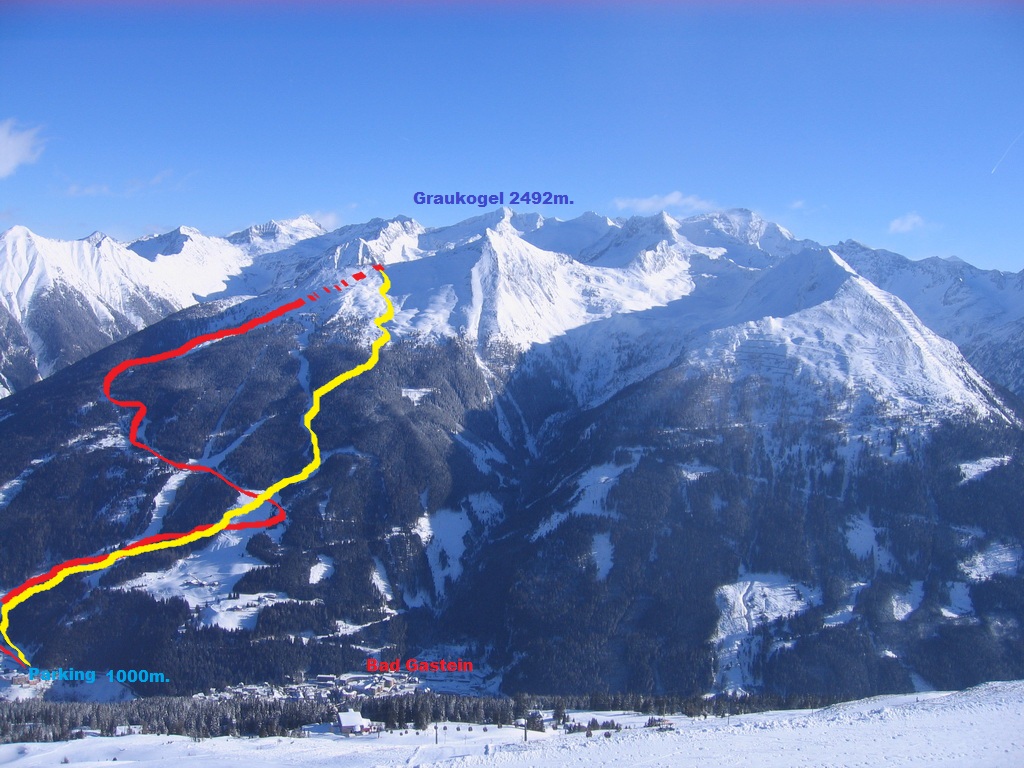 Polovica januára v rakúskom Gasteinertali. Kam sa vybrať na skialpovú túru, keď len pred pár dňami skončilo masívne sneženie sprevádzané silným vetrom? Možností je tu aj napriek tomu neúrekom. Keďže celá dolina je popretkávaná zjazdovkami a lyžiarskymi strediskami, začneme dnes pekne po zjazdovke. Vyberáme si na tento účel málo navštevované stredisko Graukogel. Sedačky sú tu staré a pomalé a nie sú poprepájané s ostatnými modernými strediskami v doline.
