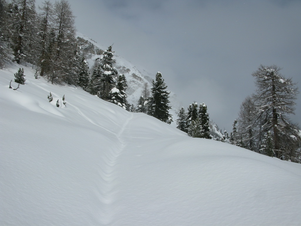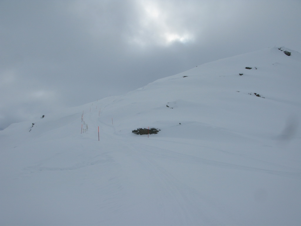 Ešte jeden tip: pri zhoršenej viditeľnosti sa v hornej časti svahu orientujte pomocou stĺpov elektrického vedenia. V dolnej časti prejdete najprv popri malej chatke, potom popri veľkom kravíne a vnoríte sa do lesa. Tu sa treba ťahať doľava, až po široký pás nad hotelom Roseggletscher, ním už rovno dole. Zlyžujete rovno ku krmelcu (pozor srnky!) :)
