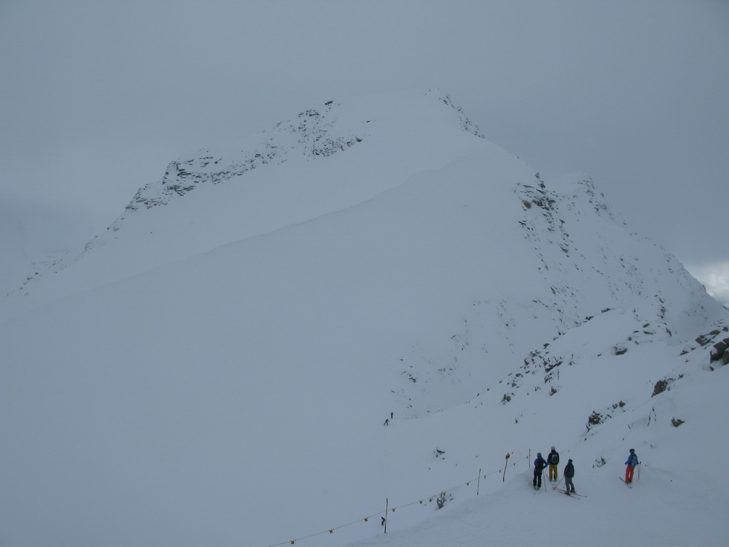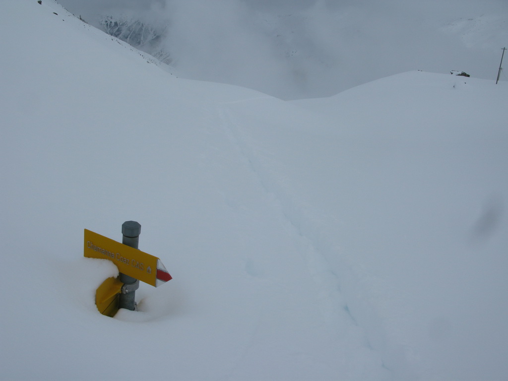 V prípade dobrej viditeľnosti by sa odtiaľto dalo na lyžiach pokračovať na kopčeky Piz Murtel a Piz Corvatsch (mapka). Dnes však viditeľnosť nebola ideálna, takže nabudúce...
