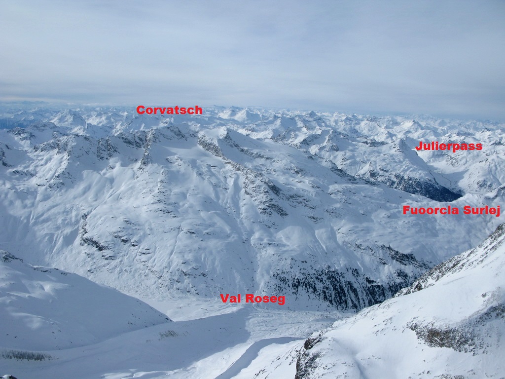 V dobrých snehových podmienkach je tento kopec totiž ideálny lyžiarsky kopec a na lyžiach sa dá spustiť dole priamo z vrcholu. Problémom je určite veľká vzdialenosť od nástupu na túto túru, keďže chata Tschierva je zatvorená celú zimu.