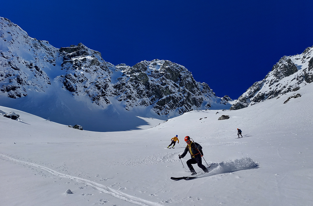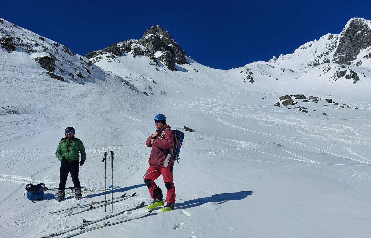 Nečakane dobré podmienky aj na zjazd: najmä horná časť, skoro prašanové orgie. Čím nižšie, tým to bolo ale horšie. V strede už čerstvo tvoriaca sa kôrka trochu chytala za nohy a úplne dole postupne tuhli rozlyžované hrudky firnu z nedávneho splazu. Takže lyžba skoro ako po lavínisku. Partia, ktorá prešla z Mlynickej, ale hovorila, že na tej strane je sneh oveľa horší.