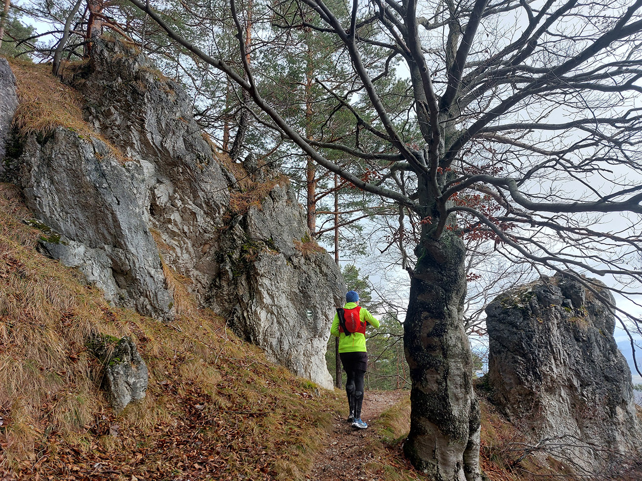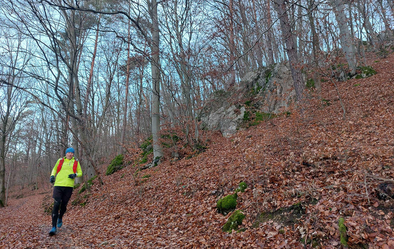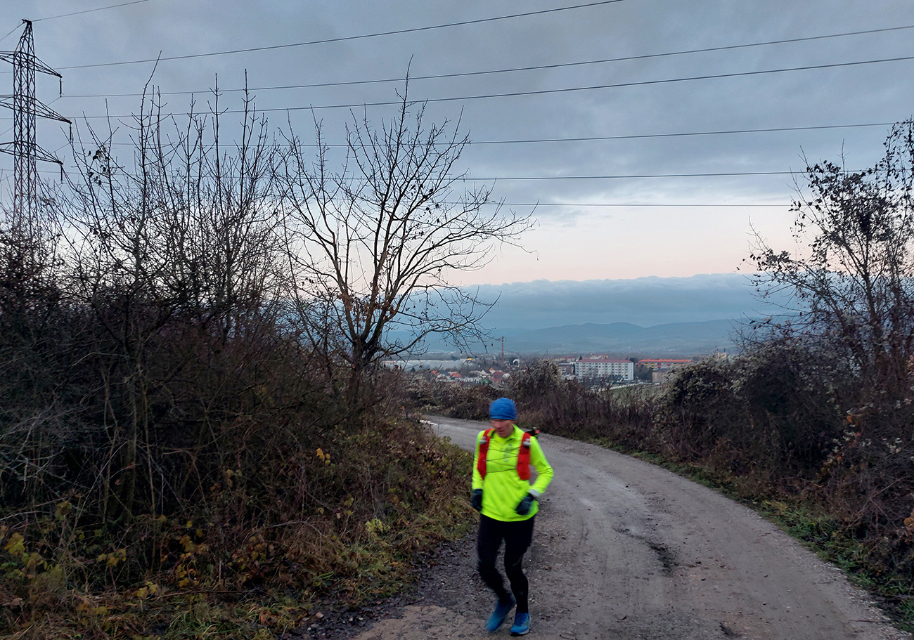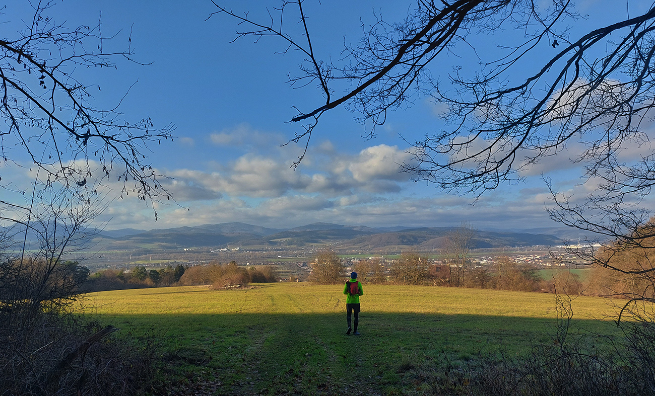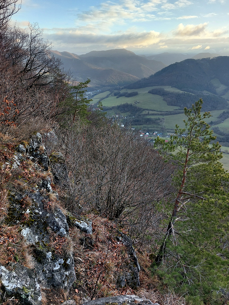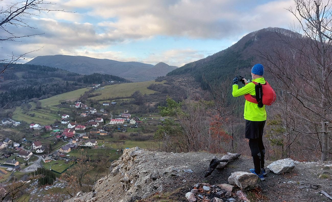 Ale samozrejme obchvatom, aby sa to rátalo. Cez niekoľko parádnych vyhliadkových braliek, takých typických pre Strážovské vrchy: Sokol, Košecký hrad, Rohatá skala, Ostrá Malenica, Jelenia skala. Takže by sa to mohlo teoreticky volať aj Strážovské vyhliadky mimo základný výber - druhá časť . Medzi vyhliadkami kadejaké cesty, za sucha inak príjemné, po predvianočných dažďoch ako kde. Niekde pod nohami sucho - lístie či šotolina, niekde blato topánky vyzúvalo, niekde trochu aj primrznutô bolo. Noc mala byť jasná, tak podľa predpovede to malo síce primrznúť všade, ale svine mraky dvihli teplotu nad nulu. Cez deň sa našťastie aspoň čiastočne odmračilo, tak po sivých dňoch sme mali aspoň trochu farebno. Takže v konečnom dôsledku fajne bolo, takto na koniec roka, aj keď zlemravené telá nás hore prudkým brzdili akosi viac, ako sme zvyknutí. Len ma hodinky ojebabrali a ktovie prečo začali merať v Ilave až niekde na sídlisku a nie hneď na stanici – tak ani ultra to nie je dole v animácii. Ale v čase slnovratovom aj to sa ráta. Takže gpx je hore, ak by si to niekto chcel zopakovať, a ďalej stručný popis toho, čo je tu: