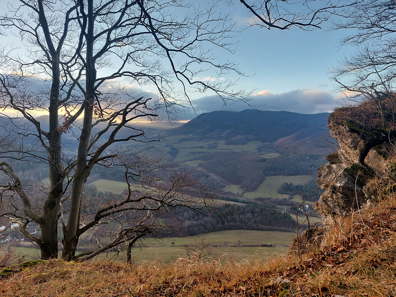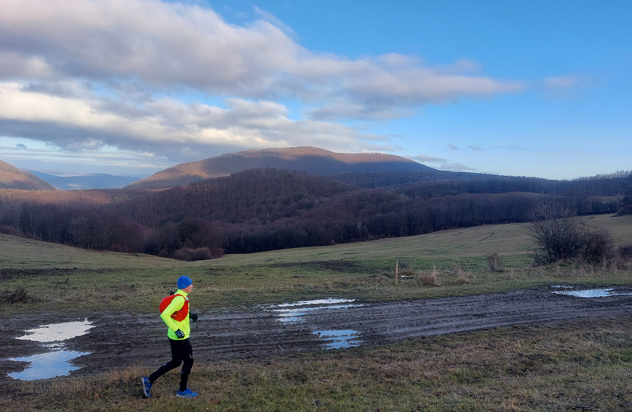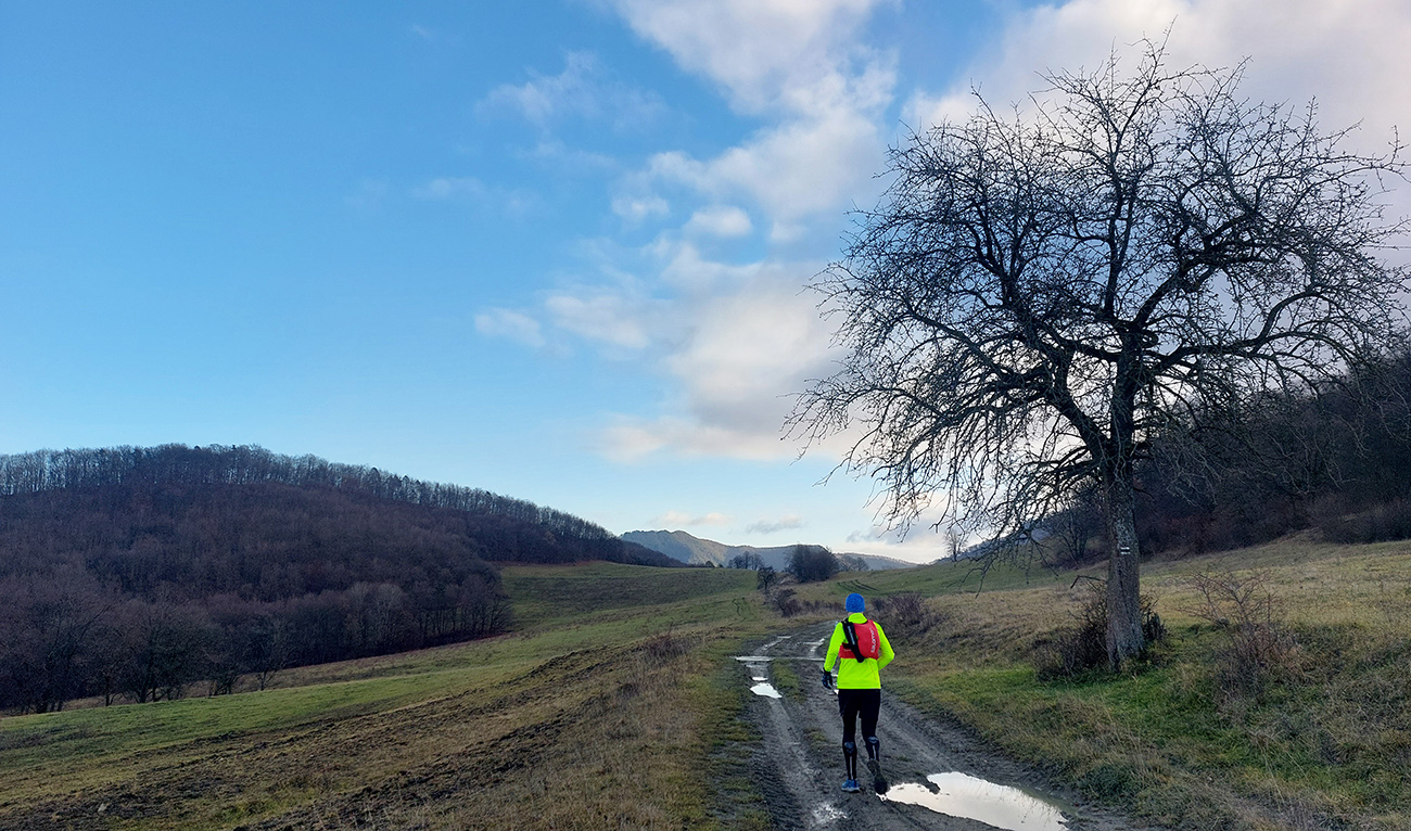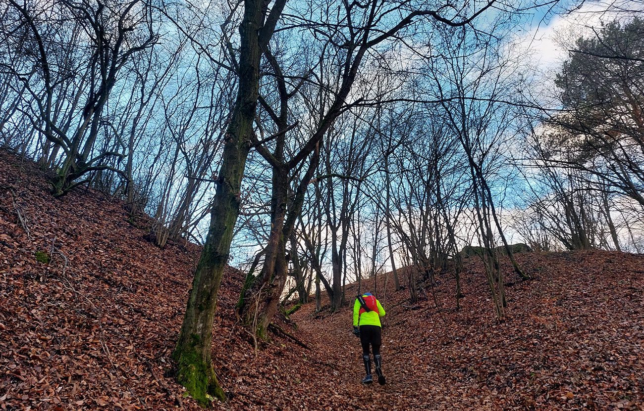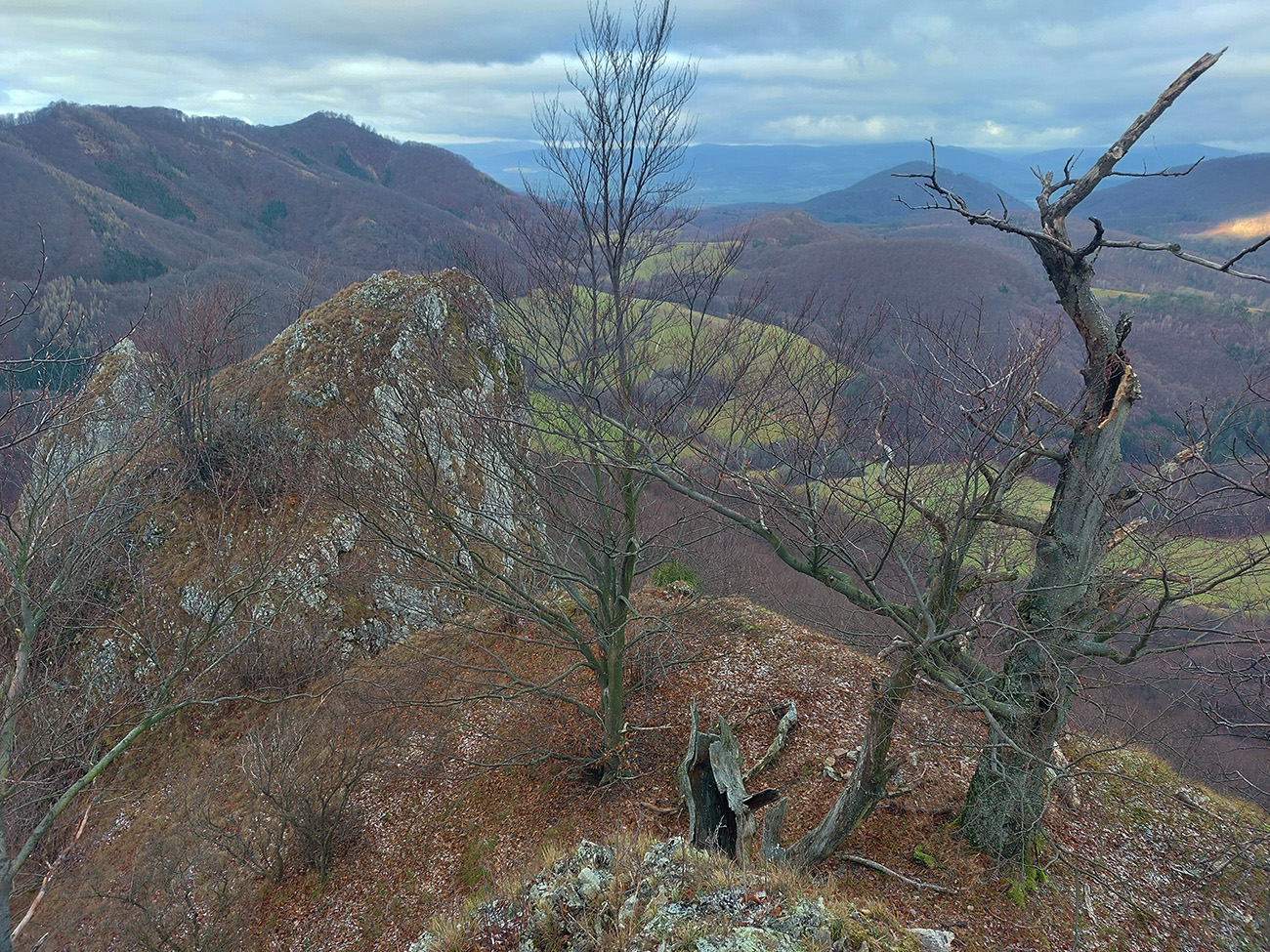 Ale samozrejme obchvatom, aby sa to rátalo. Cez niekoľko parádnych vyhliadkových braliek, takých typických pre Strážovské vrchy: Sokol, Košecký hrad, Rohatá skala, Ostrá Malenica, Jelenia skala. Takže by sa to mohlo teoreticky volať aj Strážovské vyhliadky mimo základný výber - druhá časť . Medzi vyhliadkami kadejaké cesty, za sucha inak príjemné, po predvianočných dažďoch ako kde. Niekde pod nohami sucho - lístie či šotolina, niekde blato topánky vyzúvalo, niekde trochu aj primrznutô bolo. Noc mala byť jasná, tak podľa predpovede to malo síce primrznúť všade, ale svine mraky dvihli teplotu nad nulu. Cez deň sa našťastie aspoň čiastočne odmračilo, tak po sivých dňoch sme mali aspoň trochu farebno. Takže v konečnom dôsledku fajne bolo, takto na koniec roka, aj keď zlemravené telá nás hore prudkým brzdili akosi viac, ako sme zvyknutí. Len ma hodinky ojebabrali a ktovie prečo začali merať v Ilave až niekde na sídlisku a nie hneď na stanici – tak ani ultra to nie je dole v animácii. Ale v čase slnovratovom aj to sa ráta. Takže gpx je hore, ak by si to niekto chcel zopakovať, a ďalej stručný popis toho, čo je tu: