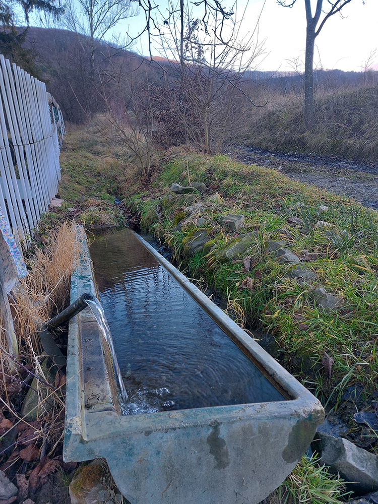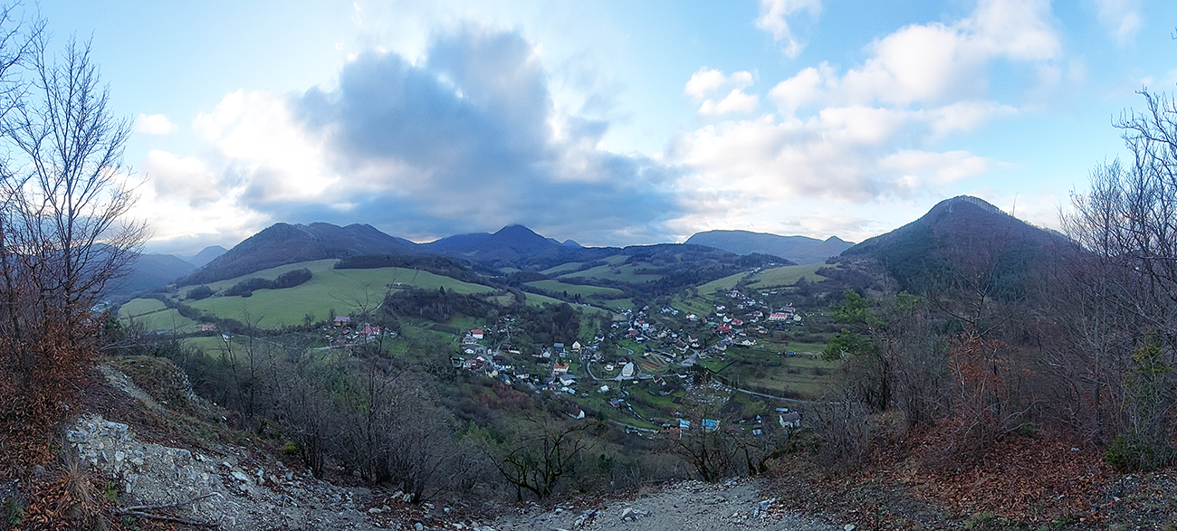 Po ďalšom krátkom asfaltovaní cez Podhradie nad/za dedinou bola taká všehochuť – pod nohami všetky možné podklady, priamo pod Rohatou skalou dokonca aj starý asfalt. Z lúk okolo sediel Prievrat a Mráznica parádne výhľady, aj dozadu na akurát nasvietené Vršatské bradlá. Cestou sa vyskytol aj jeden pramienok - podozrivého pôvodu síce, ale dali sme si a nezaškodilo.
