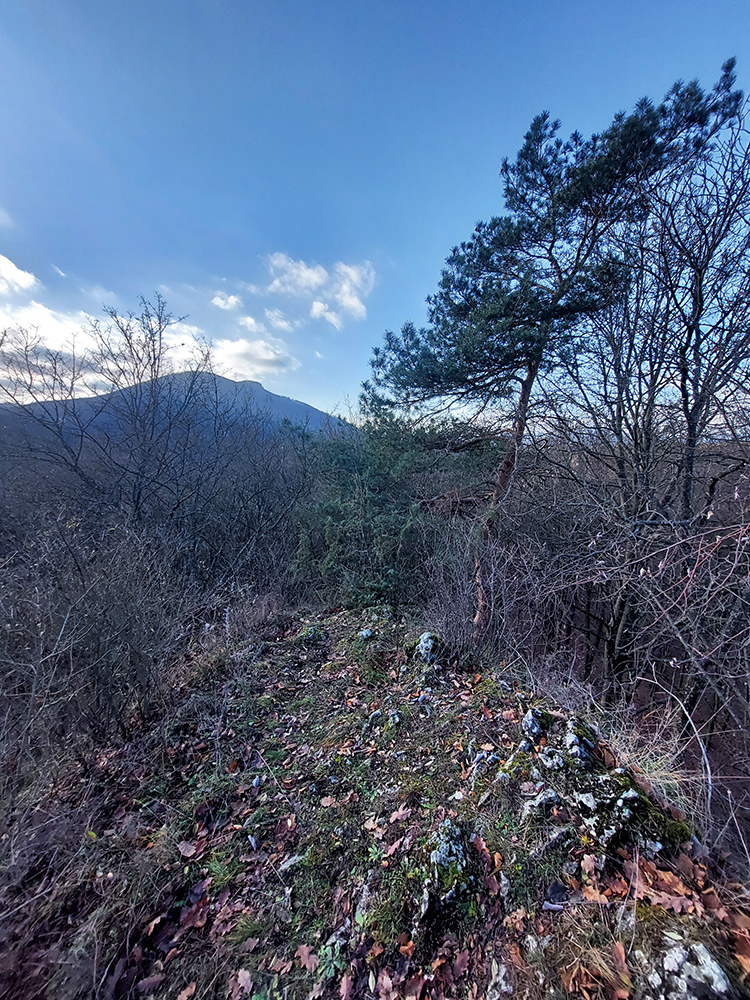 Zo spomínanej lesnej asfaltky pod Rohatou skalou zrazu žltá zavelila vpravo vbok a už sme sa plazili hore strminou, navyše v závejoch lístia alebo po klzkom blate, no rozkoš. Potom výhľadová skalka na predýchanie, ešte na záver „rohatá ferata“ (alebo teda pomocné reťaze na vrcholových bralách) a odmenou boli znovu rovnaké výhľady na Považie ako z tej skalky, akurát že „z vyššieho poschodia“.